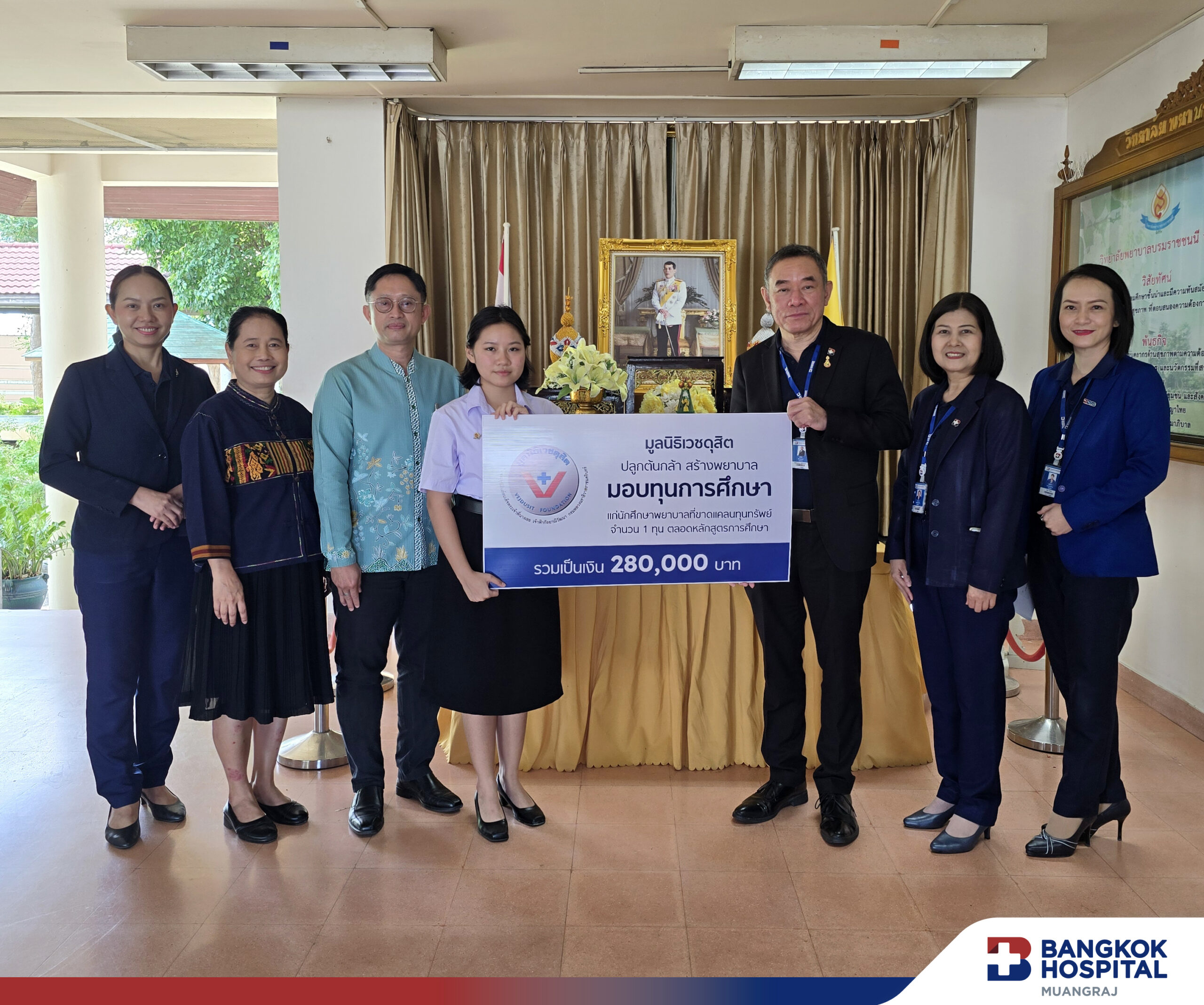 นายแพทย์ภูดิท พึ่งจันทรเดช ผู้อํานวยการโรงพยาบาลกรุงเทพเมืองราช และคณะเจ้าหน้าที่ ได้ไปมอบทุนการศึกษามูลนิธิเวชดุสิต ในพระอุปถัมภ์สมเด็จพระเจ้าพี่นางเธอ เจ้าฟ้ากัลยาณิวัฒนา กรมหลวงนราธิวาสราชนครินทร์