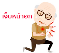 เจ็บหน้าอก (Chest Pain) ทั้งแบบทันทีทันใดหรือเจ็บเป็นๆ หายๆอาการแน่นหน้าอกหายใจไม่ค่อยออก อึดอัด จุกเสียดบริเวณลิ้นปี่ เจ็บแน่นคล้ายของหนักมากดทับ หรือบีบรัด อาจร้าวไปบริเวณต่างๆ เช่น คอ หัวไหล่หรือแขนด้านซ้ายมักเป็นนานติดต่อกันมากกว่า 20 – 30 นาที นั่งพักแล้วอาการไม่ดีขึ้น