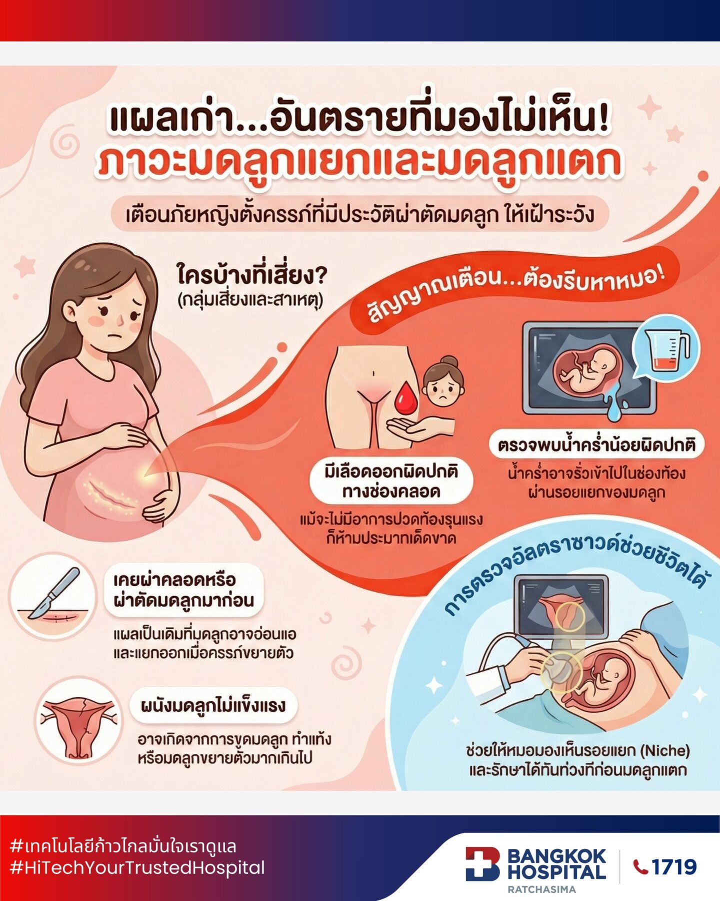 การตั้งครรภ์เป็นช่วงเวลาที่เต็มไปด้วยความสุขและความหวัง แต่สำหรับผู้หญิงที่เคยผ่าตัดมดลูกมาก่อน เช่น ผ่าคลอด หรือผ่าตัดเนื้องอกมดลูก จำเป็นต้องได้รับการดูแลอย่างใกล้ชิด เพราะมีความเสี่ยงต่อภาวะแทรกซ้อนสำคัญ ได้แก่ ภาวะมดลูกแยก และ ภาวะมดลูกแตก ซึ่งอาจเป็นอันตรายต่อทั้งแม่และทารกในครรภ์