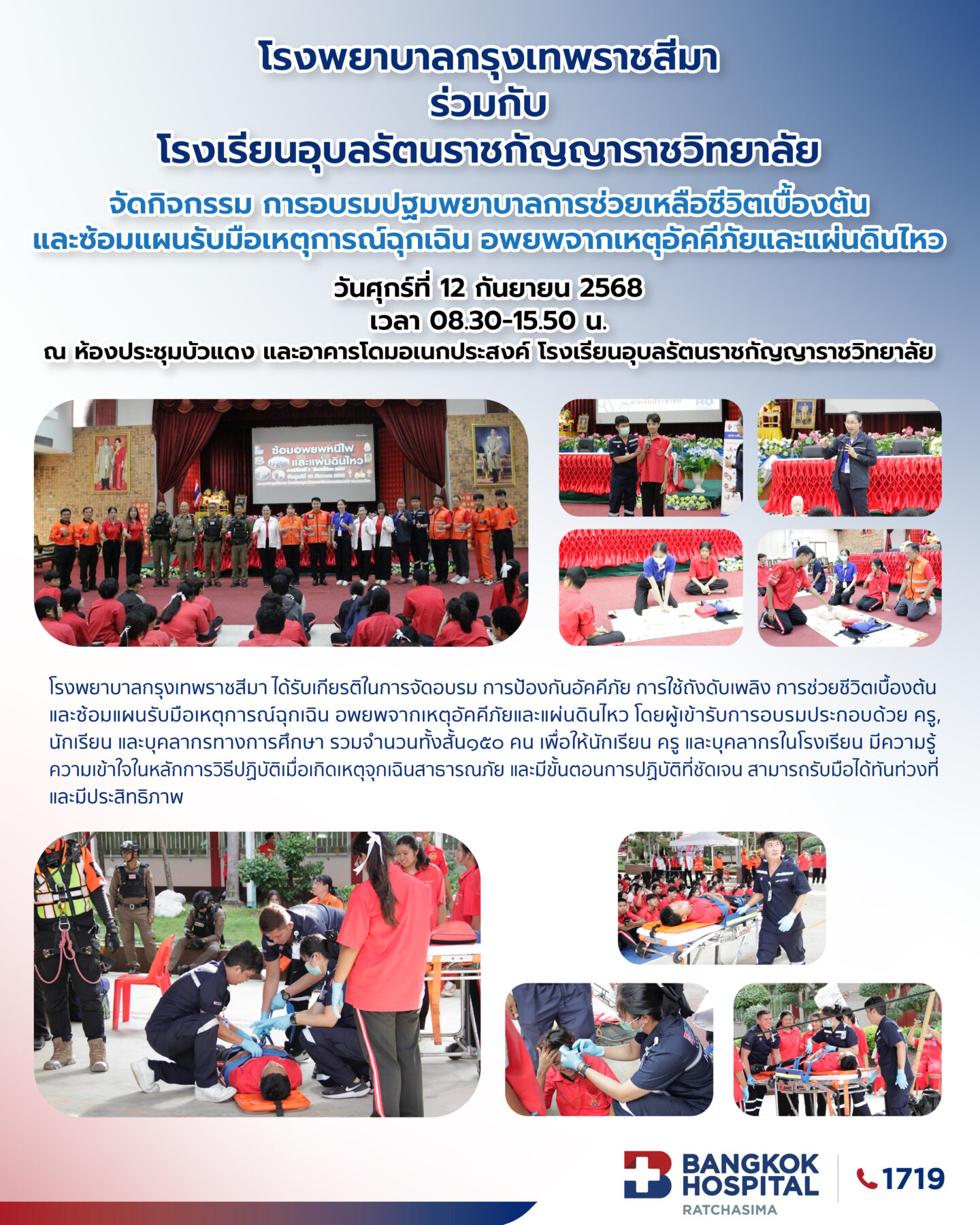 การรอบรม BLS ปฐมพยาบาลการช่วยเหลือชีวิตเบื้องต้น และซ้อมแผนรับมือเหตุการณ์ฉุกเฉิน< 1 นาทีในการอ่านข้อมูลโดยโรงพยาบาลกรุงเทพราชสีมาอัปเดตเมื่อ: 16 ก.ย. 2568แพ็กเกจแนะนำวัคซีนป้องกันไวรัส RSV สำหรับหญิงตั้งครรภ์ตรวจสุขภาพ Smart Vitalส่องกล้อง ระบบทางเดินอาหารโรงพยาบาลกรุงเทพราชสีมาอัปเดตเมื่อ: 16 ก.ย. 2568 #เทคโนโลยีก้าวไกลมั่นใจเราดูแล #HiTechYourTrustedHospital #ความภูมิใจในเครือโรงพยาบาลกรุงเทพแพ็กเกจและโปรโมชั่นวัคซีนป้องกันไวรัส RSV สำหรับหญิงตั้งครรภ์9,000 บาทรายละเอียดซื้อเลยตรวจสุขภาพ Smart Vital3,500 บาทรายละเอียดซื้อเลยส่องกล้อง ระบบทางเดินอาหาร22,900 - 40,000 บาทรายละเอียดซื้อเลยดูแพ็กเกจอื่น ๆข่าวสารและกิจกรรมดูทั้งหมดข่าวสารและกิจกรรมมูลนิธิเวชดุสิตฯ "ปลูกต้นกล้า สร้างพยาบาล" รุ่นที่ 3ผลงานทางวิชาการ บทความวิจัย ฐาน TCI 1Safety Culture Together in the Workplace “สร้างวัฒนธรรมความปลอดภัย” ในสถานประกอบกิจการดูทั้งหมด