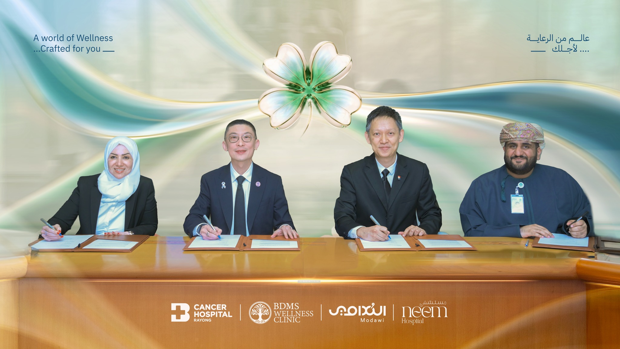 เมื่อวันที่ 24 พฤศจิกายน พ.ศ. 2568 โรงพยาบาลมะเร็งกรุงเทพระยองและบริษัท บีดีเอ็มเอส เวลเนส คลินิก จำกัด ได้ลงนามบันทึกข้อตกลงความร่วมมือกับโรงพยาบาลนีมและ Modawi Platform ณ กรุงมัสกัต ประเทศโอมาน เพื่อพัฒนาระบบการดูแลผู้ป่วยมะเร็งเต้านมอย่างครบวงจรตามมาตรฐานสากล
