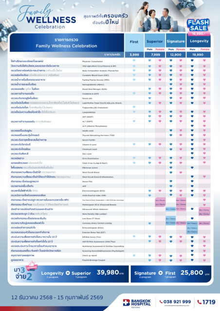 - ศูนย์หัวใจ และศูนย์สุขภาพสตรีสามารถนัดตรวจแยกวันได้ (ภายหลังตรวจสุขภาพหลัก) โดยไม่มีค่าใช้จ่ายเพิ่มเติม
