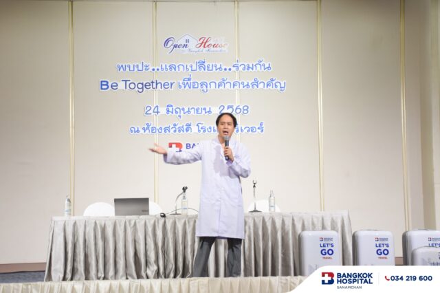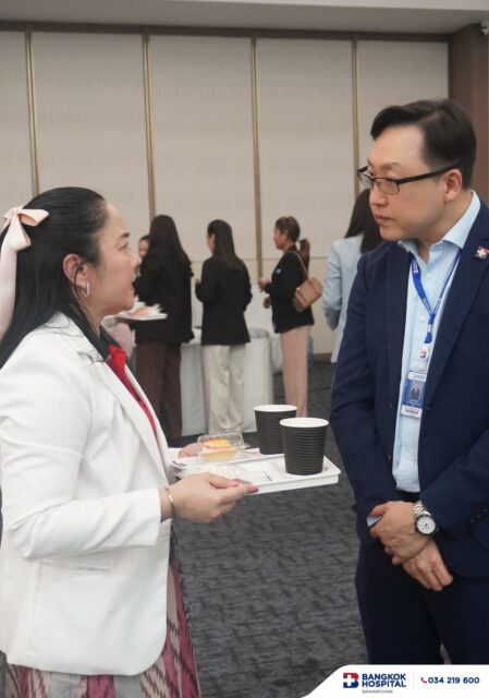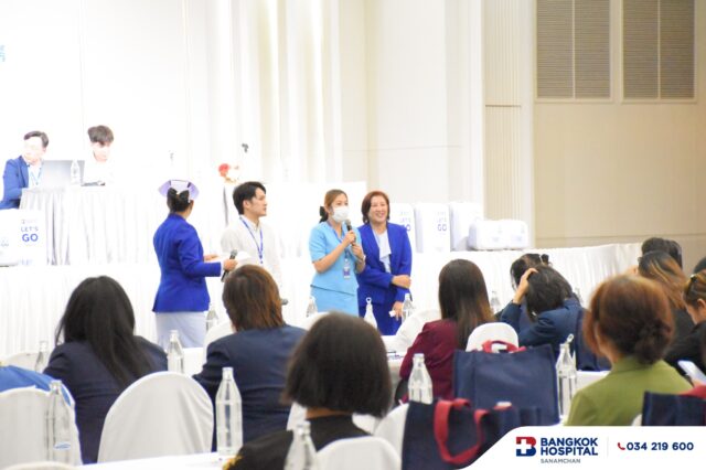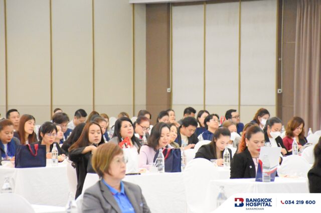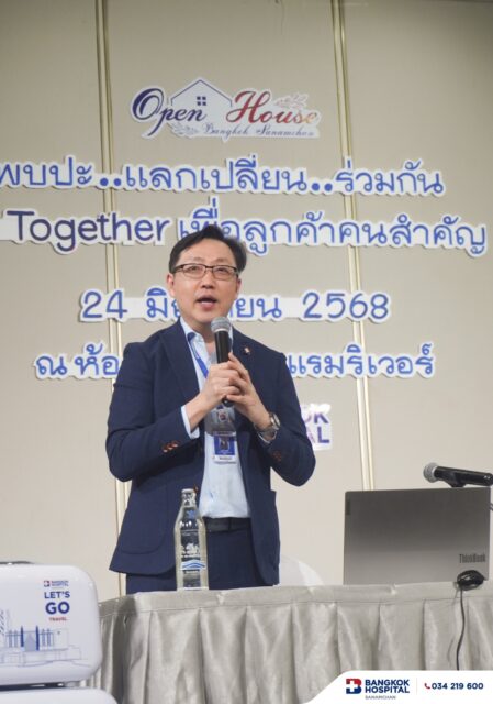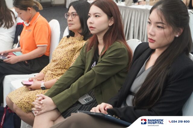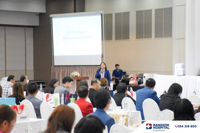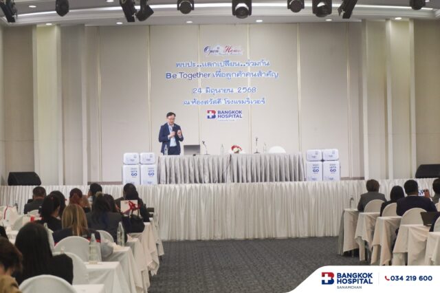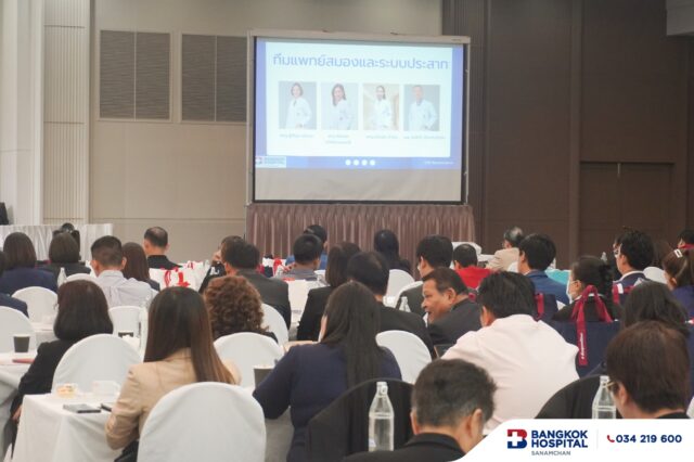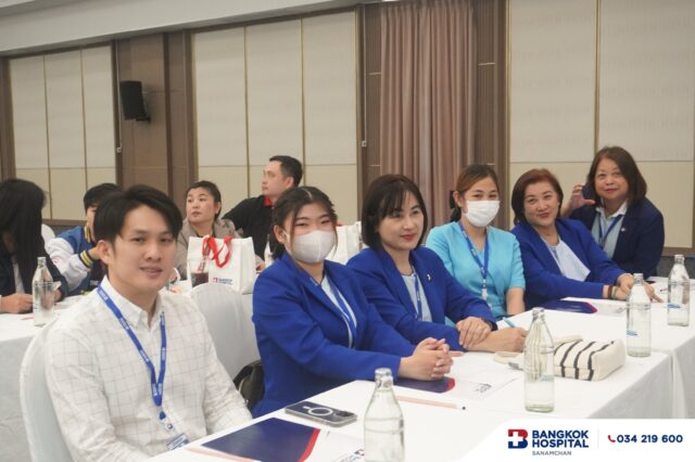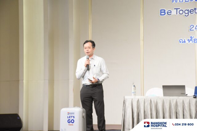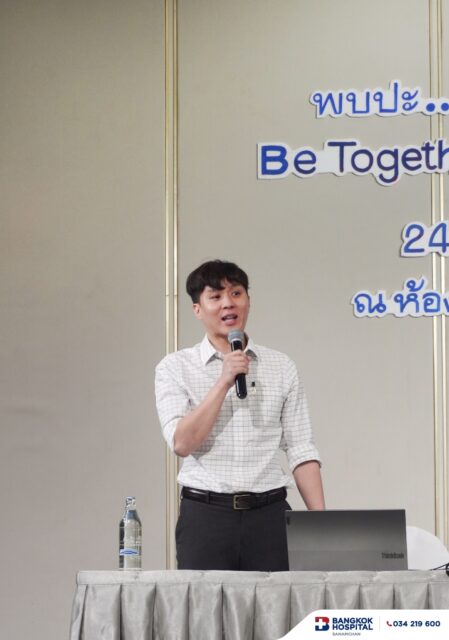 จากนั้น นพ.ธีระยุทธ์ ธนนันทน์ธัญโชติ รองผู้อำนวยการโรงพยาบาลกรุงเทพสนามจันทร์ บรรยายในภาพรวมของโรงพยาบาล ซึ่งภายในงานยังมีการบรรยายในหัวข้อต่างๆ โดยแพทย์ผู้เชี่ยวชาญของโรงพยาบาล รวมถึงแนะนำทีมดูแลตัวแทนประกัน “Be Together” และหน่วยงานในโรงพยาบาล อาทิ แผนกการเงิน แผนกประสานสิทธิ์ แผนกทะเบียน และแผนกลูกค้าสัมพันธ์ มาให้ข้อมูลและแลกเปลี่ยนประสบการณ์รวมถึงการให้ข้อมูลแนวทางการให้บริการผู้ป่วยที่ถือกรมธรรม์ประกันชีวิต ขั้นตอนการเคลมประกันและการประสานงาน