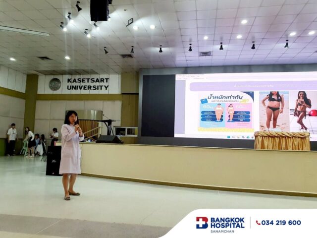 วันที่ 1 สิงหาคม 68 ที่ผ่านมา แพทย์หญิงศศิพิมพ์ จิระศิริรักษ์ แพทย์อายุรศาสตร์โรคต่อมไร้ท่อและเมตาบอลิสม แผนกอายุรกรรม โรงพยาบาลกรุงเทพสนามจันทร์ นำทีมเข้าร่วมบรรยาย ในหัวข้อการสร้างเสริมสุขภาพ ปรับเปลี่ยนพฤติกรรมสุขภาพ และร่วมออกบูธ กับหน่วยงานทั้งภาครัฐและเอกชน ในการจัดกิจกรรมครั้งที่ 1 มหกรรมสร้างเสริม และปรับเปลี่ยนพฤติกรรมสุขภาพ ณ อาคารศูนย์มหาวิทยาลัย เกษตรศาสตร์ วิทยาเขตกำแพงแสน