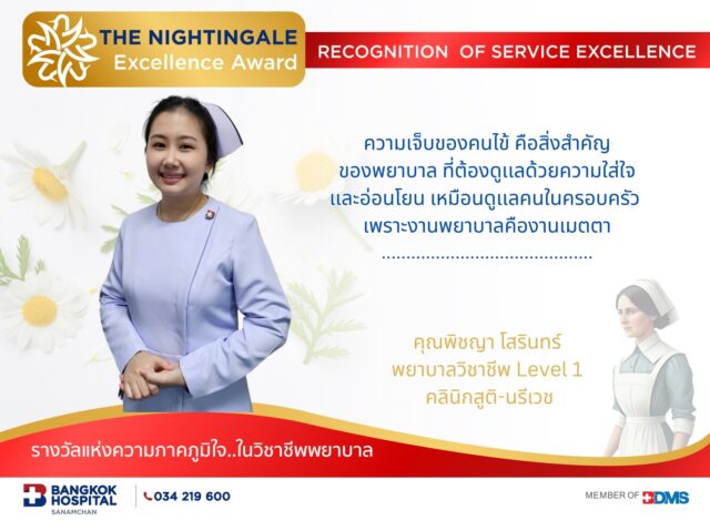 ฝ่ายการพยาบาล โรงพยาบาลกรุงเทพสนามจันทร์ ได้มอบรางวัล The Nightingale Excellence Award เป็นรางวัลเชิดชูเกียรติที่มอบให้กับ “บุคลากรทางการพยาบาล” ที่มีความโดดเด่นในด้านความทุ่มเท การอุทิศตน และการมีหัวใจบริการ (Service Mind) อย่างยอดเยี่ยม โดยมีวัตถุประสงค์เพื่อสร้างขวัญกำลังใจให้แก่พยาบาลผู้ปฏิบัติหน้าที่ดูแลผู้ป่วยอย่างสุดความสามารถ