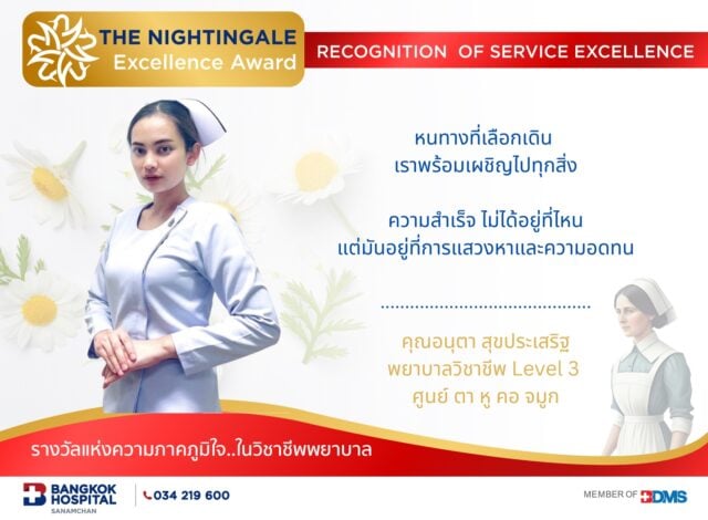 ฝ่ายการพยาบาล โรงพยาบาลกรุงเทพสนามจันทร์ ได้มอบรางวัล The Nightingale Excellence Award เป็นรางวัลเชิดชูเกียรติที่มอบให้กับ “บุคลากรทางการพยาบาล” ที่มีความโดดเด่นในด้านความทุ่มเท การอุทิศตน และการมีหัวใจบริการ (Service Mind) อย่างยอดเยี่ยม โดยมีวัตถุประสงค์เพื่อสร้างขวัญกำลังใจให้แก่พยาบาลผู้ปฏิบัติหน้าที่ดูแลผู้ป่วยอย่างสุดความสามารถ