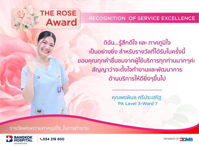 รางวัล ROSE ซึ่งย่อมาจาก Recognition for Outstanding Service Excellence เป็นรางวัลที่มอบเพื่อเชิดชูและเฉลิมฉลองให้กับพนักงานที่ไม่ใช่พยาบาล ที่แสดงถึงความทุ่มเท ความเมตตา และความมุ่งมั่นต่อความเป็นเลิศในด้านการบริการในการปฏิบัติหน้าที่และขับเคลื่อนเป้าหมายและพันธกิจของโรงพยาบาลกรุงเทพสนามจันทร์ ซึ่งเป็นแบบอย่างที่ยอดเยี่ยมในการให้บริการที่เป็นเลิศ