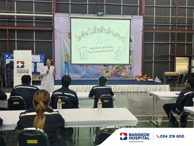 วันนี้ (25 ก.ย.) โรงพยาบาลกรุงเทพสนามจันทร์ ได้ออกหน่วยให้ความรู้กับพนักงาน บริษัท ซีพีเอฟ (ประเทศไทย) จำกัด มหาชน โดยมี พญ.นุจรีนารถ คูหาเกษมสิน เวชศาสตร์ป้องกัน แขนงเวชศาสตร์การเดินทางและท่องเที่ยว ร่วมบรรยายให้ความรู้พิเศษในหัวข้อ “วัคซีนไวรัสตับอักเสบ: เกราะป้องกันตับจากภัยร้าย” เพื่อให้พนักงานตระหนักถึงความสำคัญของการป้องกันโรคไวรัสตับอักเสบ ซึ่งเป็นสาเหตุสำคัญที่นำไปสู่ภาวะ ตับแข็ง และ มะเร็งตับ โดยเฉพาะอย่างยิ่ง ไวรัสตับอักเสบบี (HBV) และ ไวรัสตับอักเสบเอ (HAV) ซึ่งมีวัคซีนที่สามารถป้องกันได้อย่างมีประสิทธิภาพ