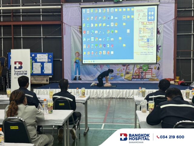 “อุบัติเหตุและภาวะฉุกเฉินทางสุขภาพ เช่น ภาวะหัวใจหยุดเต้น สามารถเกิดขึ้นได้ทุกที่ทุกเวลา การช่วยเหลือที่รวดเร็วที่สุดคือการช่วยเหลือที่เกิดจากคนรอบข้าง การที่พนักงานของบริษัท ได้รับการฝึกอบรมนี้ จึงถือเป็นสิ่งสำคัญอย่างยิ่ง เพราะหากเกิดเหตุฉุกเฉินขึ้นภายในบริษัท พนักงานทุกคนจะสามารถให้การช่วยเหลือเบื้องต้นได้อย่างทันท่วงที ก่อนที่ทีมแพทย์ฉุกเฉินจะมาถึง ซึ่งเป็น ‘นาทีทอง’ ที่จะช่วยเพิ่มโอกาสรอดชีวิตของผู้ป่วยได้เป็นอย่างมาก” โรงพยาบาลกรุงเทพสนามจันทร์ มุ่งมั่นในการสร้างสังคมให้ทุกพื้นที่ปลอดภัย และ ทุกชีวิตต้องได้รับการดูแลอย่างทันท่วงที