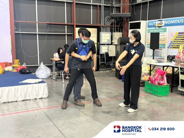 และต่อด้วย การฝึกอบรม “การช่วยเหลือชีวิตขั้นพื้นฐาน” (Basic Life Support: BLS) เพื่อยกระดับความปลอดภัยและเตรียมพร้อมรับมือกับเหตุฉุกเฉินที่อาจเกิดขึ้นในระหว่างปฏิบัติงาน โดย ทีมฝึกอบรม BLS (Basic Life Support Training Team) จากโรงพยาบาลกรุงเทพสนามจันทร์ ได้ถ่ายทอดความรู้และฝึกปฏิบัติจริงในเรื่องสำคัญ เช่น: