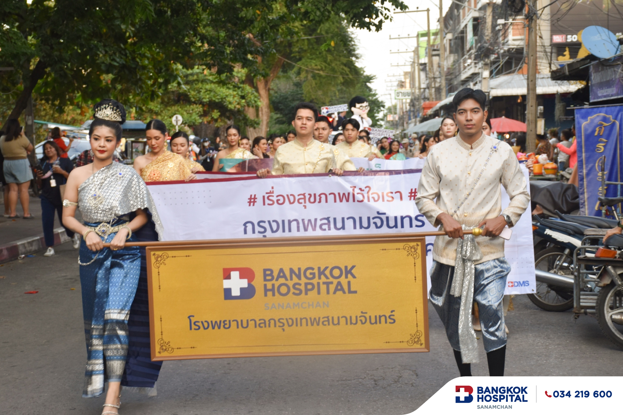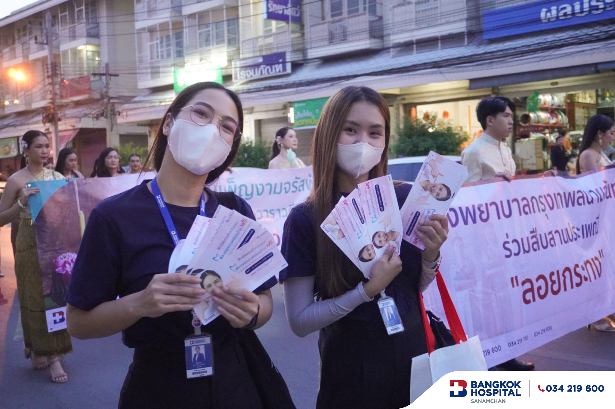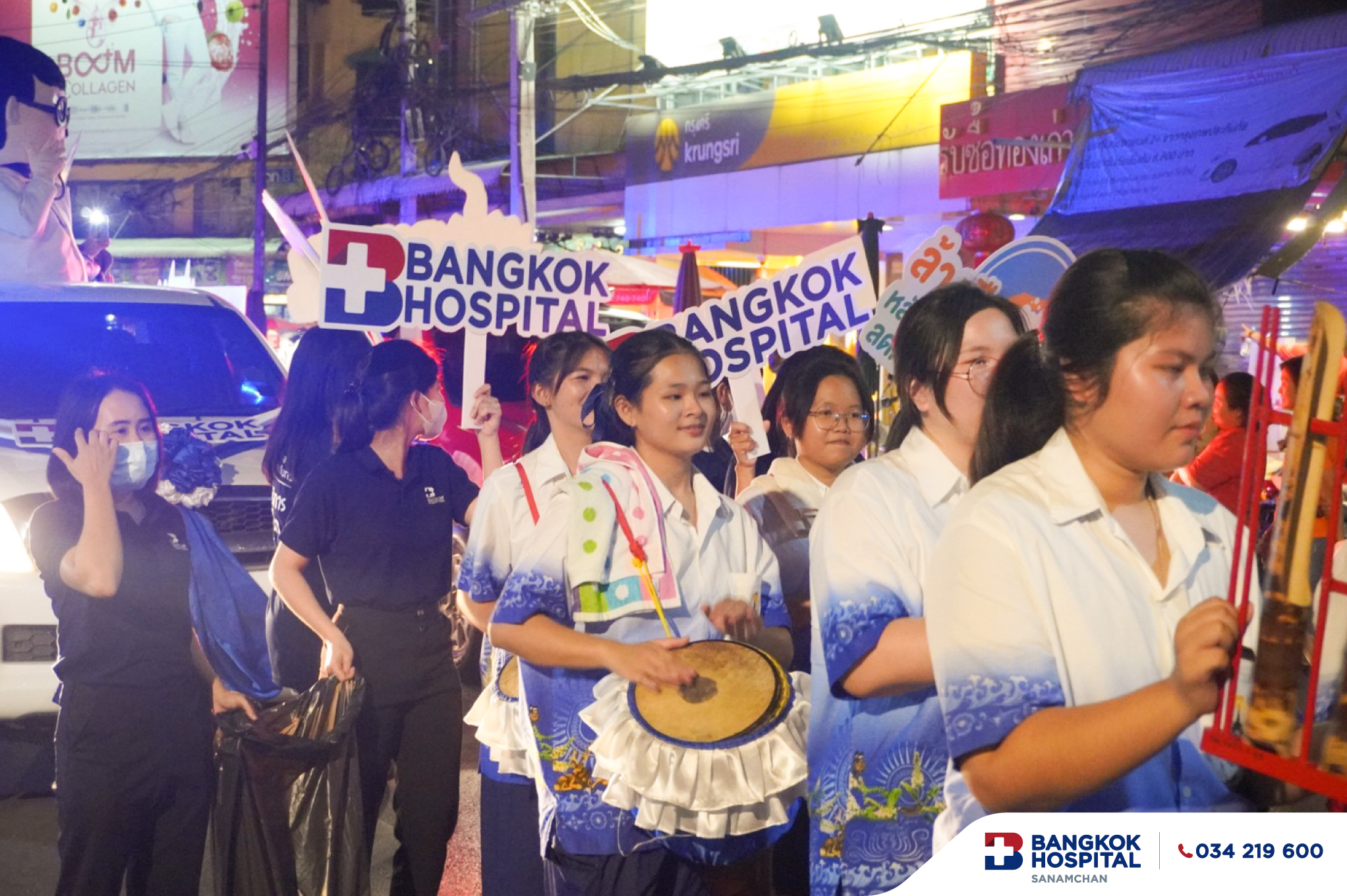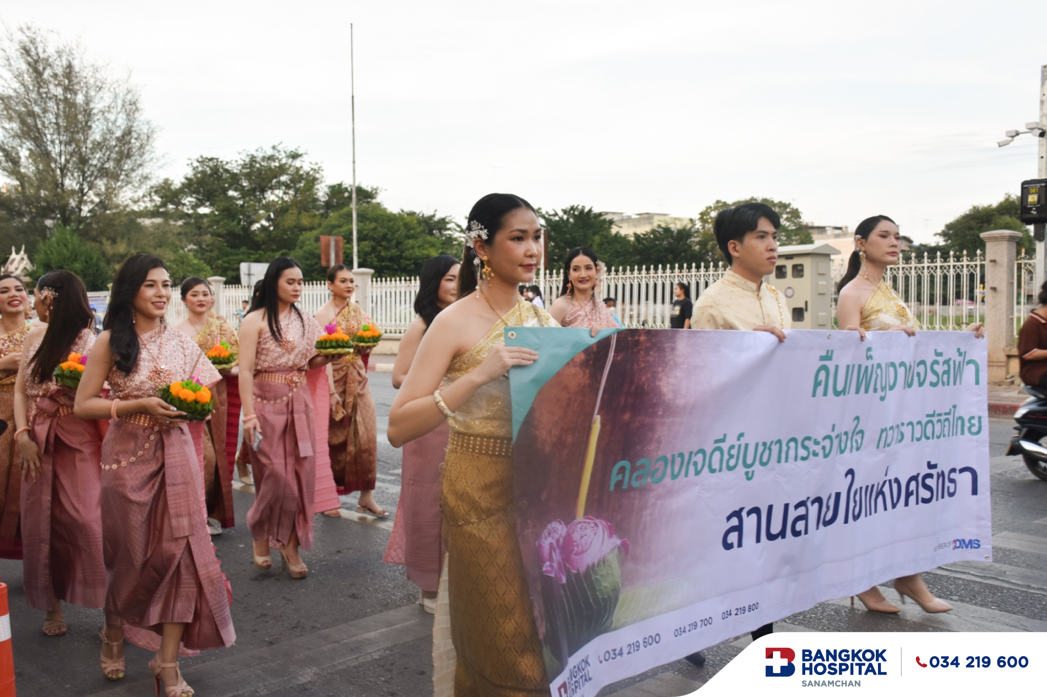โรงพยาบาลกรุงเทพสนามจันทร์ เข้าร่วมกิจกรรมประเพณีลอยกระทง ประจำปี 2566 ภายใต้ชื่อกิจกรรม “คืนเพ็ญงามจรัสฟ้า คลองเจดีย์บูชากระจ่างใจ ทวารวดีวิถีไทย สานสายใยแห่งศรัทธา” ที่จัดขึ้นโดยเทศบาลนครนครปฐม โดยทางโรงพยาบาลกรุงเทพสนามจันทร์ได้เข้าร่วมกิจกรรมเดินริ้วขบวนแห่กระทงตั้งแต่ บริเวณถนนทิพากร จนถึง บริเวณคลองเจดีย์บูชา (หน้าวัดพระงาม) โดยมีเจ้าหน้าที่โรงพยาบาลแต่งชุดไทยสวยงาม เดินรณรงค์ลอยกระทงปลอดภัย ปลอดเครื่องดื่มแอลกอฮอล์ ใส่ใจสิ่งแวดล้อม เพื่อส่งเสริมและอนุรักษ์ขนบธรรมเนียมไทย สืบทอดประเพณีอันงดงามของไทย