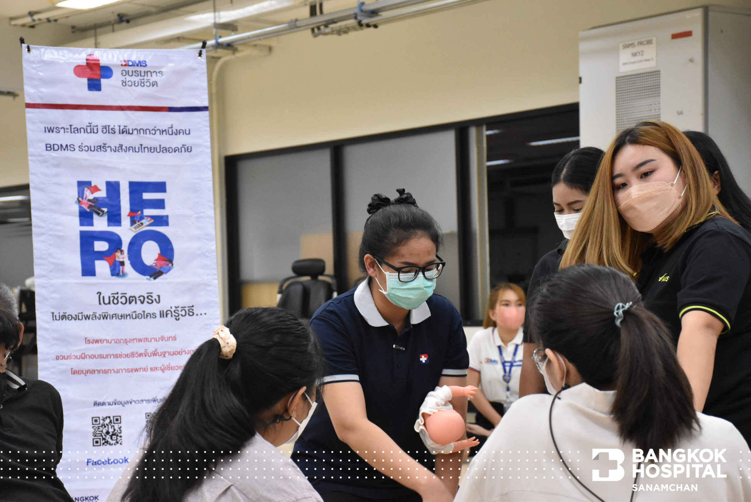 โรงพยาบาลกรุงเทพสนามจันทร์ จัดอบรม “BDMS อบรมการช่วยชีวิต” ให้กับ พนักงานบริษัท แอดวานซ์ อินโฟร์ เซอร์วิส จํากัด (มหาชน) เพื่อช่วยชีวิตขั้นพื้นฐานและการปฐมพยาบาลเบื้องต้น