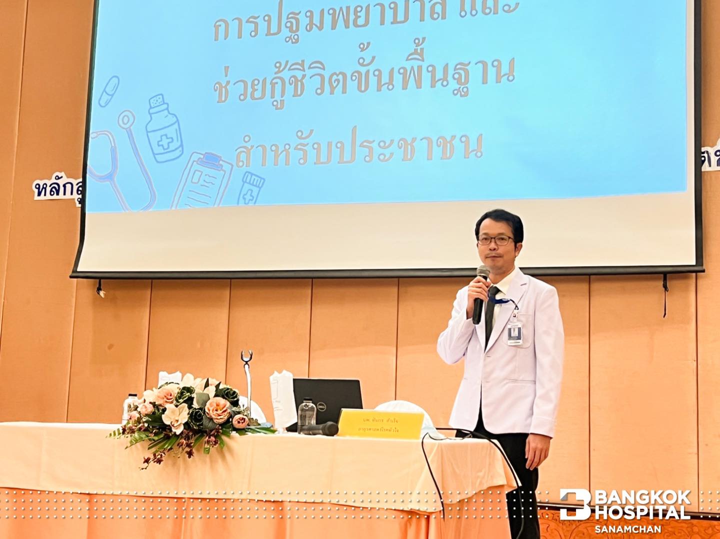 วันที่ 22 มิถุนายน พ.ศ.2566 ทางโรงพยาบาลกรุงเทพสนามจันทร์ โดยนายแพทย์ทินกร สำเร็จ อายุรศาสตร์โรคหัวใจ พร้อมด้วยเจ้าหน้าที่ ทีมงานสร้างฮีโร่ ได้รับเกียรติ มาบรรยายให้ความรู้หลักสูตรการปฐมพยาบาลและช่วยกู้ชีวิตขั้นพื้นฐานสำหรับประชาชน ให้กับพนักงานบริหารทั่วไป ระดับ C4-C9 ธนาคารเพื่อการเกษตร และ สหกรณ์การเกษตรภาคตะวันตก ณ โรงแรมไมด้า แกรนด์ ทวารวดี