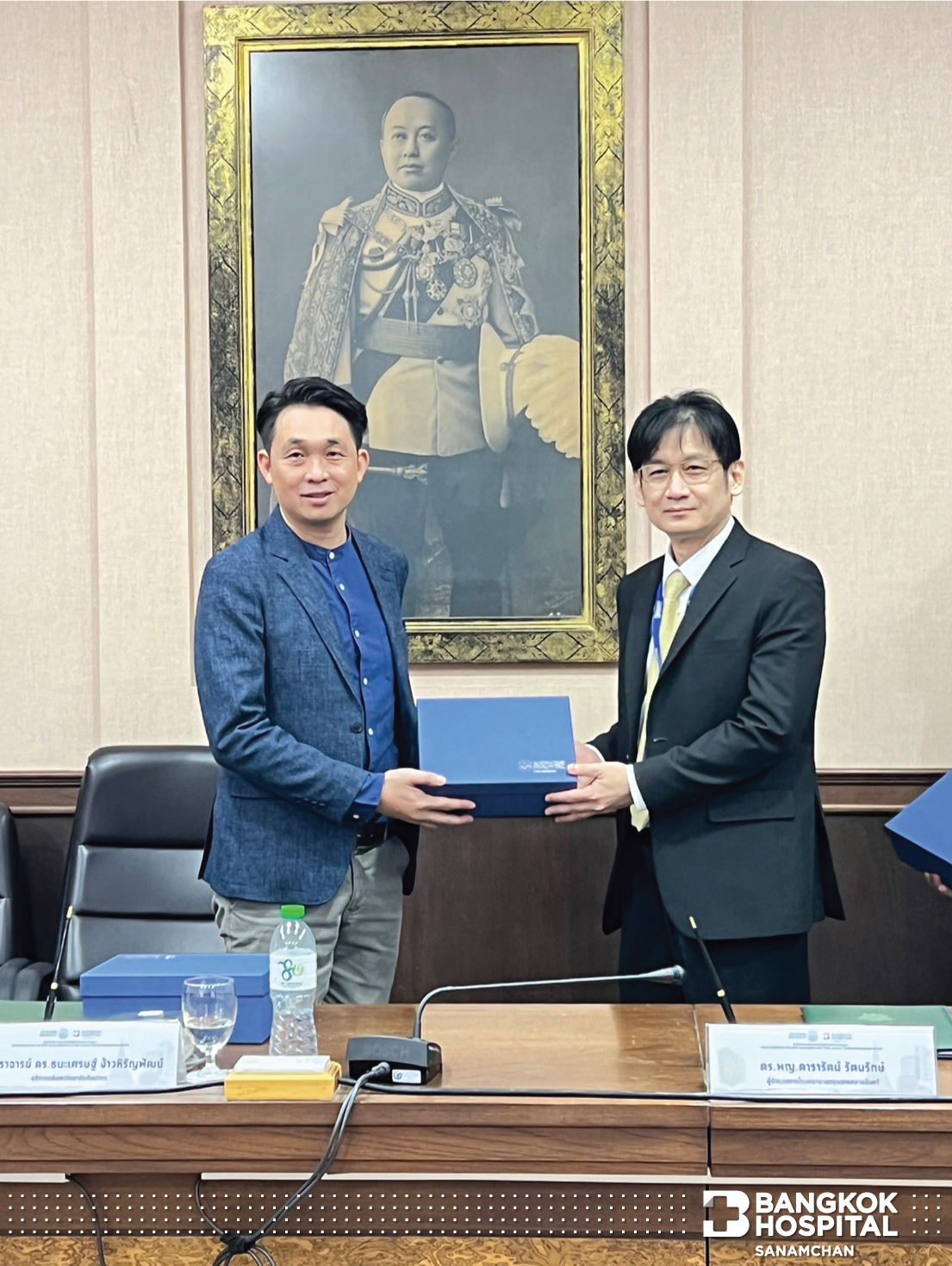 วันจันทร์ที่ 26 มิถุนายน 2566 โรงพยาบาลกรุงเทพสนามจันทร์ นำโดย ดร.พญ.ดารารัตน์ รัตนรักษ์ ผู้อำนวยการโรงพยาบาลกรุงเทพสนามจันทร์ น.อ.นายแพทย์ยุวัฒน์ ธนังกุล ผู้อำนวยการโรงพยาบาลเทพากร และ รองผู้อำนวยการโรงพยาบาลกรุงเทพสนามจันทร์ นายแพทย์ธีระยุทธ์ ธนนันทน์ธัญโชติ ผู้ช่วยผู้อำนวยการ และ นายแพทย์จุลธรรม ประทุมสุวรรณ ประธานฝ่ายการแพทย์ ได้เข้าพบ ศาสตราจารย์ ดร.ภก.ธนเศรษฐ์ ง้าวหิรัญพัฒน์ อธิการบดีมหาวิทยาลัยศิลปากร วิทยาเขตพระราชวังสนามจันทร์ เพื่อร่วมลงนามบันทึกข้อตกลงความร่วมมือทางวิชาการ ซึ่งมีขึ้นเพื่อ วัตถุประสงค์ ในการอำนวยความสะดวกให้กับคณาจารย์ บุคลากร นักเรียน และ นักศึกษาของมหาวิทยาลัยในกรณีฉุกเฉิน ต้องเข้ารับบริการของโรงพยาบาล โดยมีบริการรถพยาบาลรับส่งผู้ป่วยในรัศมีไม่เกิน 10 กิโลเมตรจากโรงพยาบาลโดยไม่เสียค่าใช้จ่าย