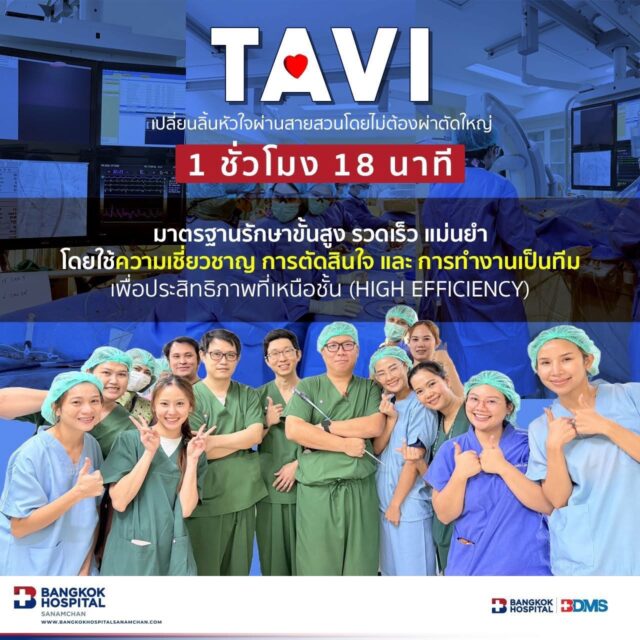 โดยทีมแพทย์ผู้เชี่ยวชาญ ของโรงพยาบาลกรุงเทพสนามจันทร์ ประสบความสำเร็จในการรักษา เปลี่ยนลิ้นหัวใจผ่านสายสวนทางหลอดเลือด (TAVI / TAVR)
