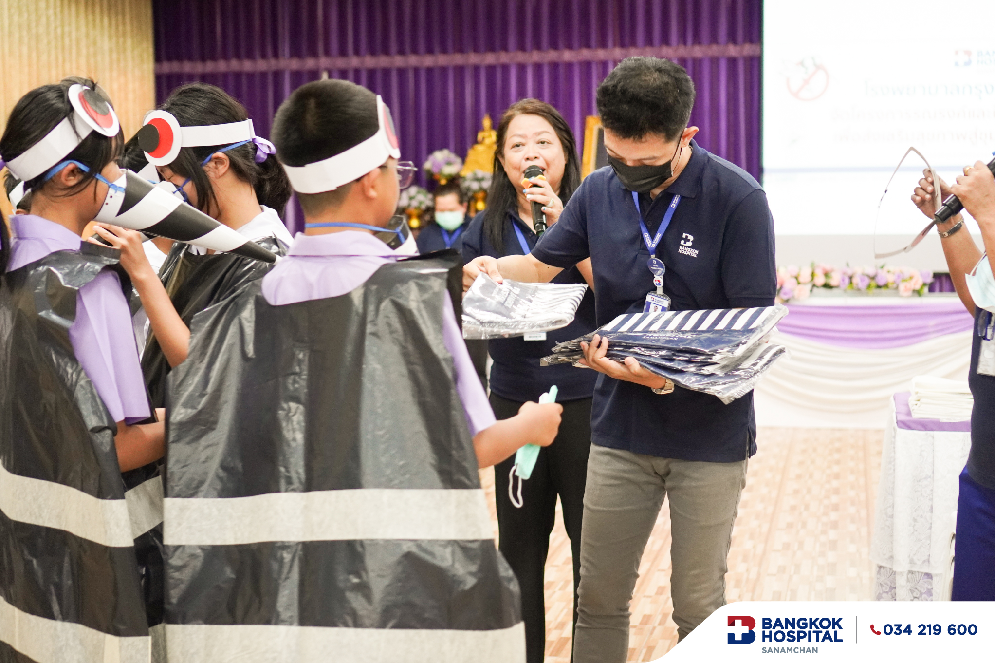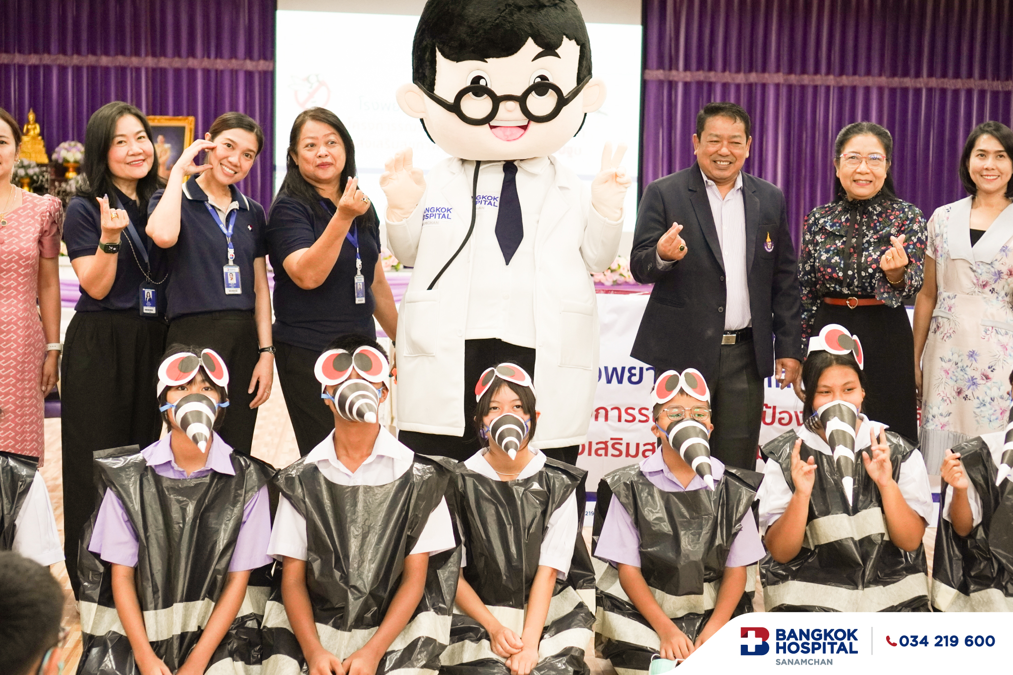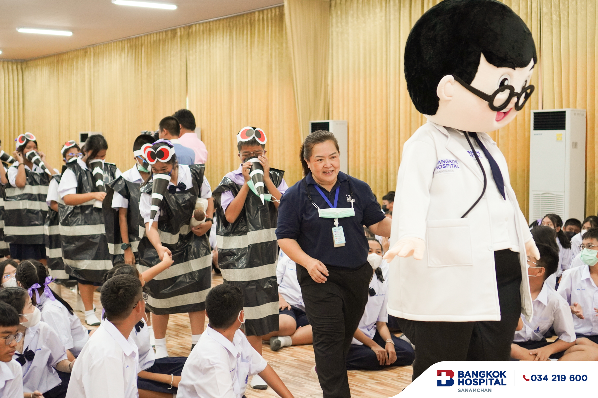กิจกรรมประกอบด้วย การให้ความรู้เรื่องโรคไข้เลือดออก ผ่านการบรรยาย โดย พว.ปริญรัช ม่วงนวล พยาบาลควบคุมและป้องกันการติดเชื้อ จากโรงพยาบาลกรุงเทพสนามจันทร์ ทีมงานนำน้องๆเล่นเกมส์ และตอบคำถามรับรางวัลพิเศษ สร้างความสนุกสนานให้กับน้องๆนักเรียนเป็นอย่างมาก