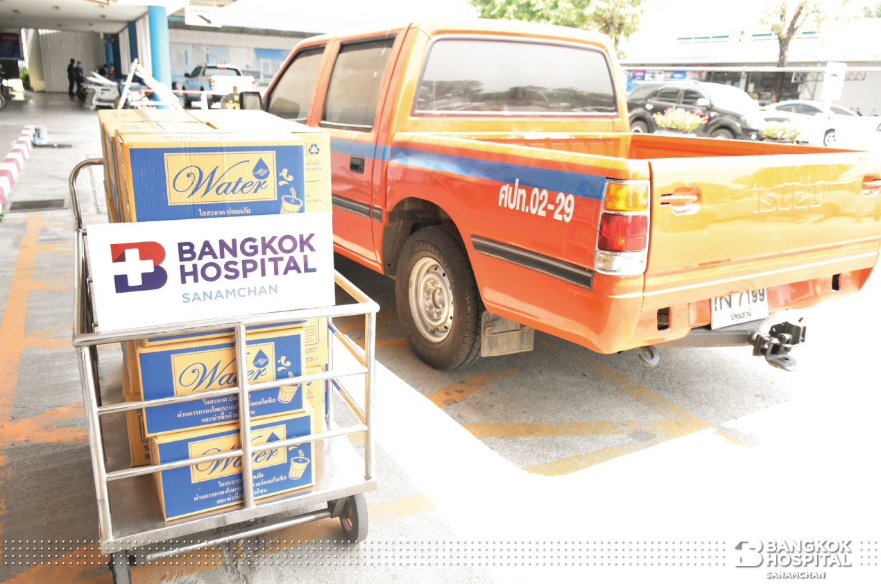 ดร.พญ. ดารารัตน์ รัตนรักษ์ ผู้อำนวยการโรงพยาบาลกรุงเทพสนามจันทร์ พร้อมเจ้าหน้าที่ บุคลากรภายในโรงพยาบาล มอบน้ำดื่มจำนวน 20 ลัง ให้กับศูนย์อำนวยการความปลอดภัยทางถนน จังหวัดนครปฐม สำหรับใช้สนับสนุนการปฎิบัติงานของเจ้าหน้าที่ประจำจุดตรวจ และ จุดบริการด่านชุมชน ในการป้องกันและลดอุบัติเหตุทางถนนช่วงเทศกาลสงกรานต์ ตั้งแต่วันที่ 11-17 เมษายน 2566