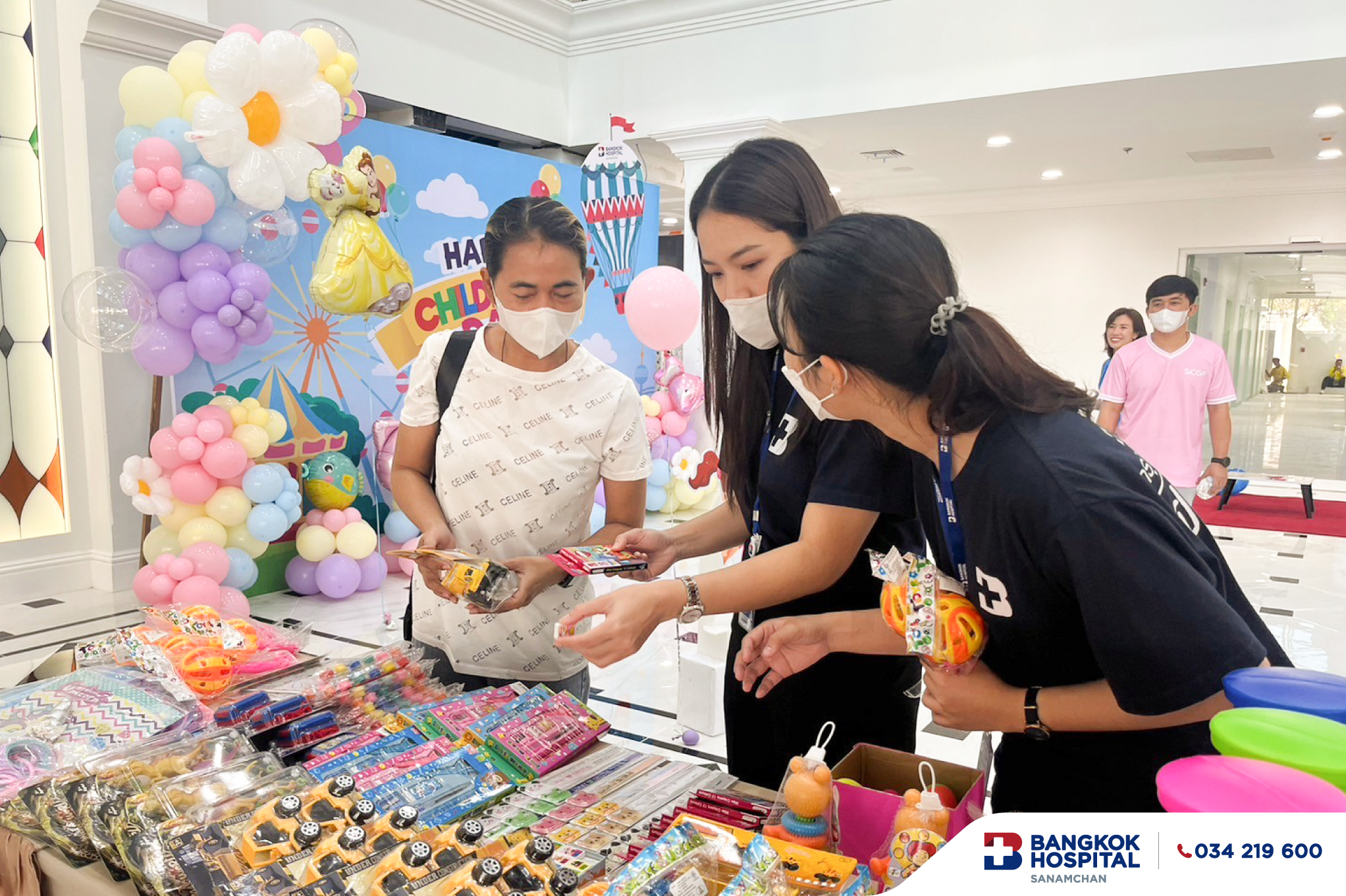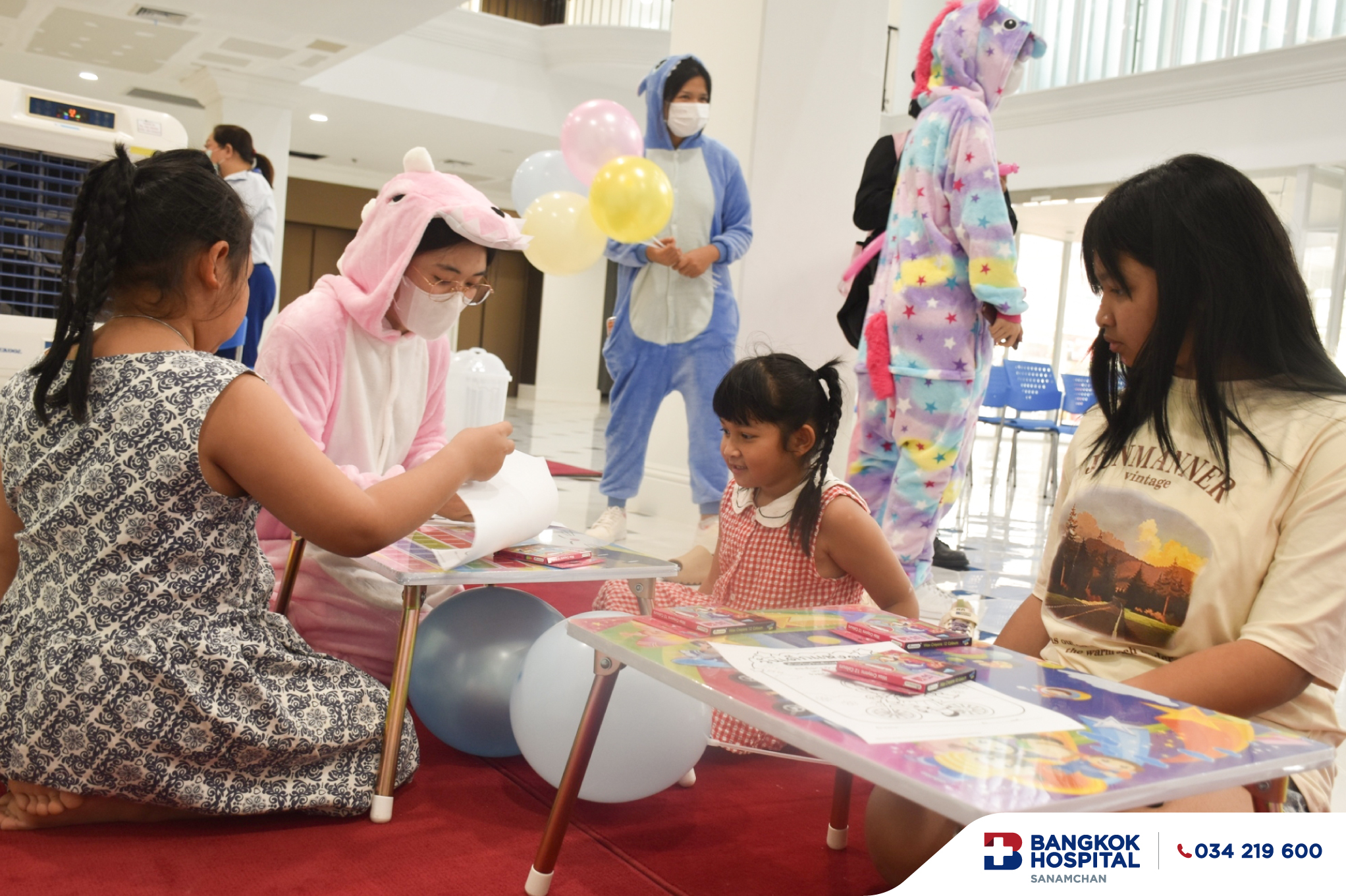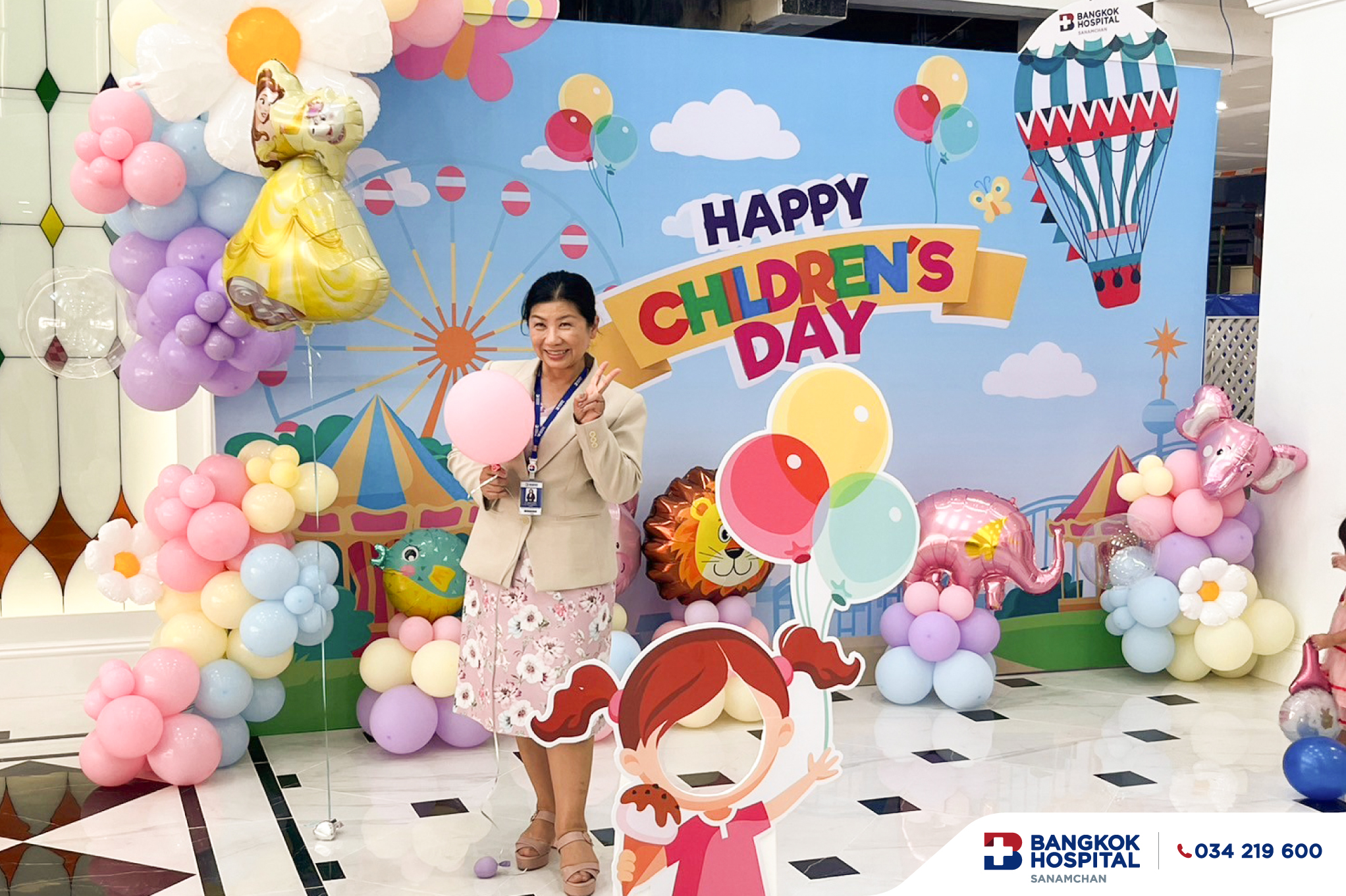 วันเด็กปีนี้ พี่อบอุ่น น้องสนุกสนาน กับกิจกรรมดีๆทั้งกิจกรรมวาดภาพระบายสี การแสดงมายากลระยะใกล้ แถมด้วยความรู้กับกิจกรรมการคัดแยกขยะเพื่อให้ได้ฝึกแยกขยะให้ถูกวิธี ฝึกการมีวินัย และ รับผิดชอบต่อสังคม แถมด้วยกิจกรรมความห่วงใยจากใจผู้บริหาร พี่หมอ ดร.พญ.ดารารัตน์ รัตนรักษ์ ผู้อำนวยการโรงพยาบาลกรุงเทพสนามจันทร์ ที่ได้ขึ้นไปเยี่ยมน้องๆที่บนห้องอย่างต่อเนื่องตลอดทุกปี พร้อมมอบของขวัญวันเด็กให้ถึงห้องกันเลยทีเดียว วันเด็กปีนี้ขอให้น้องๆเด็กดี สุขภาพแข็งแรง เติบโตอย่างมีความสุขนะคะ