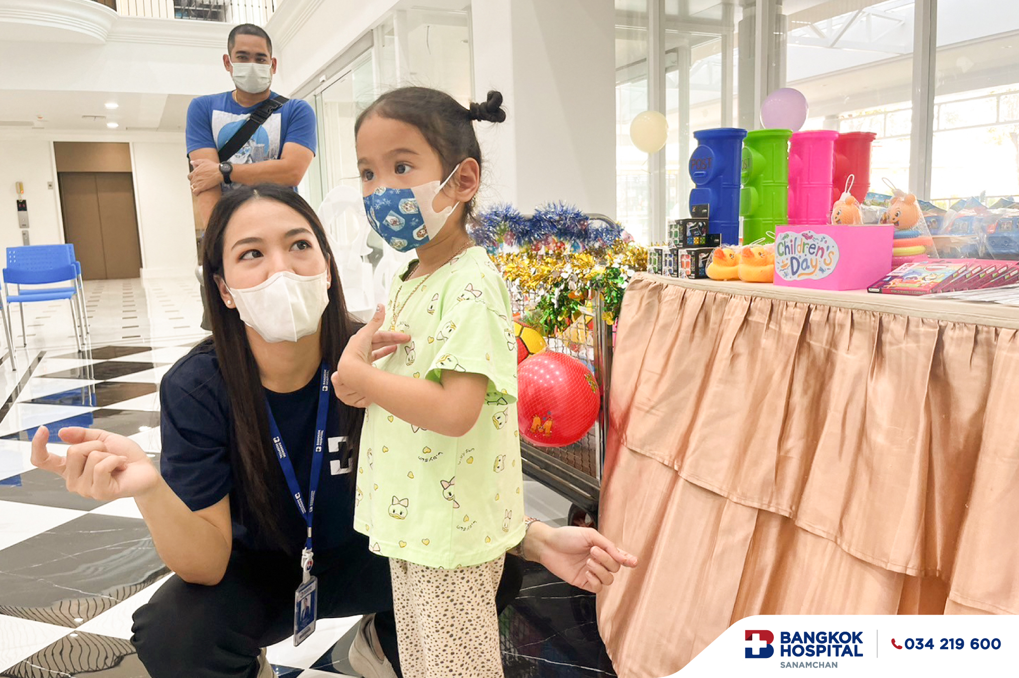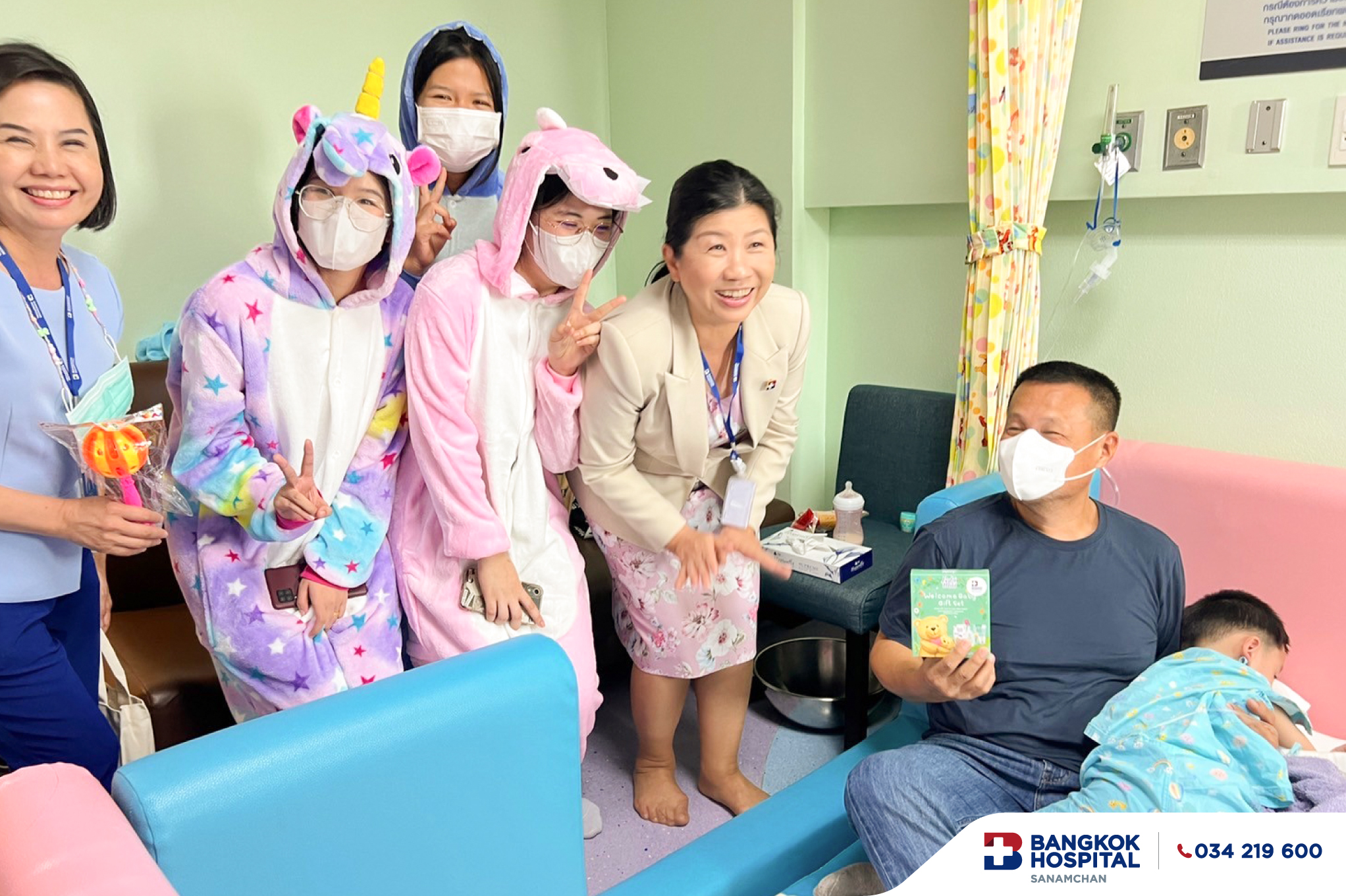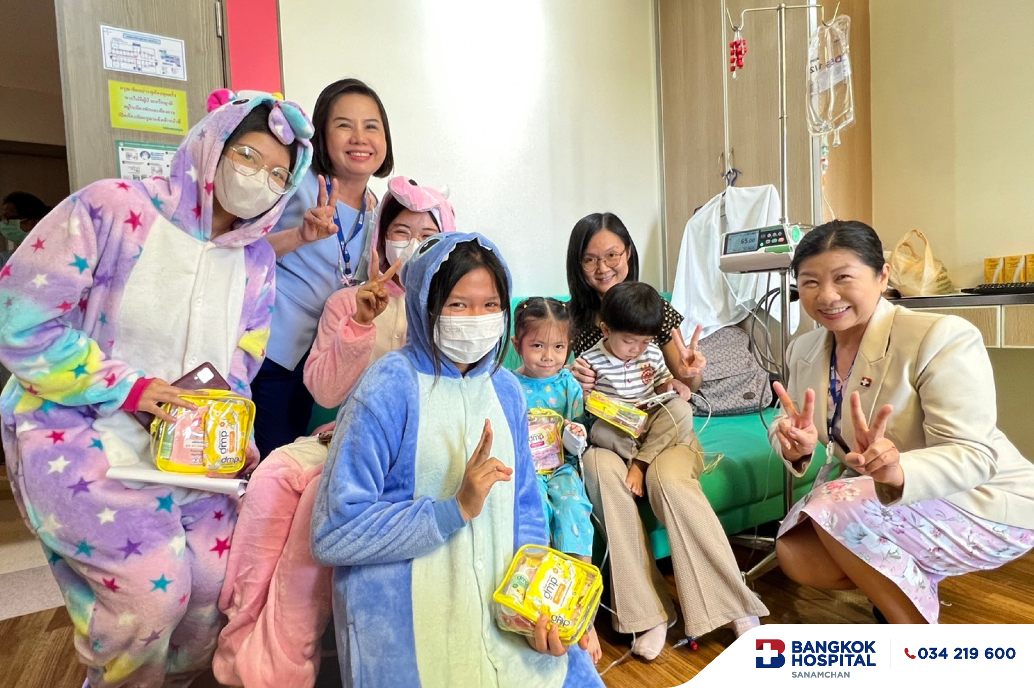 วันเด็กปีนี้ พี่อบอุ่น น้องสนุกสนาน กับกิจกรรมดีๆทั้งกิจกรรมวาดภาพระบายสี การแสดงมายากลระยะใกล้ แถมด้วยความรู้กับกิจกรรมการคัดแยกขยะเพื่อให้ได้ฝึกแยกขยะให้ถูกวิธี ฝึกการมีวินัย และ รับผิดชอบต่อสังคม แถมด้วยกิจกรรมความห่วงใยจากใจผู้บริหาร พี่หมอ ดร.พญ.ดารารัตน์ รัตนรักษ์ ผู้อำนวยการโรงพยาบาลกรุงเทพสนามจันทร์ ที่ได้ขึ้นไปเยี่ยมน้องๆที่บนห้องอย่างต่อเนื่องตลอดทุกปี พร้อมมอบของขวัญวันเด็กให้ถึงห้องกันเลยทีเดียว วันเด็กปีนี้ขอให้น้องๆเด็กดี สุขภาพแข็งแรง เติบโตอย่างมีความสุขนะคะ