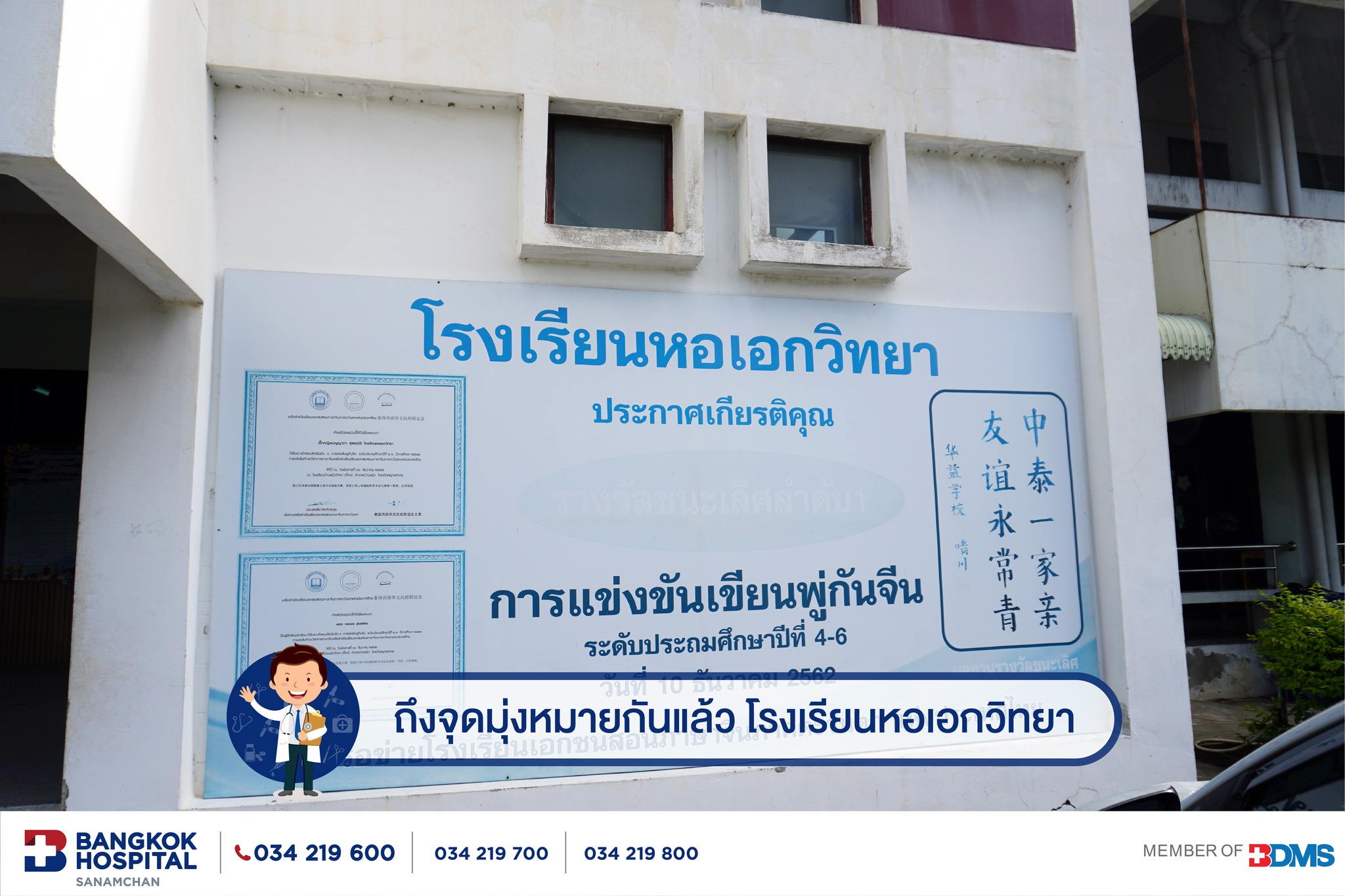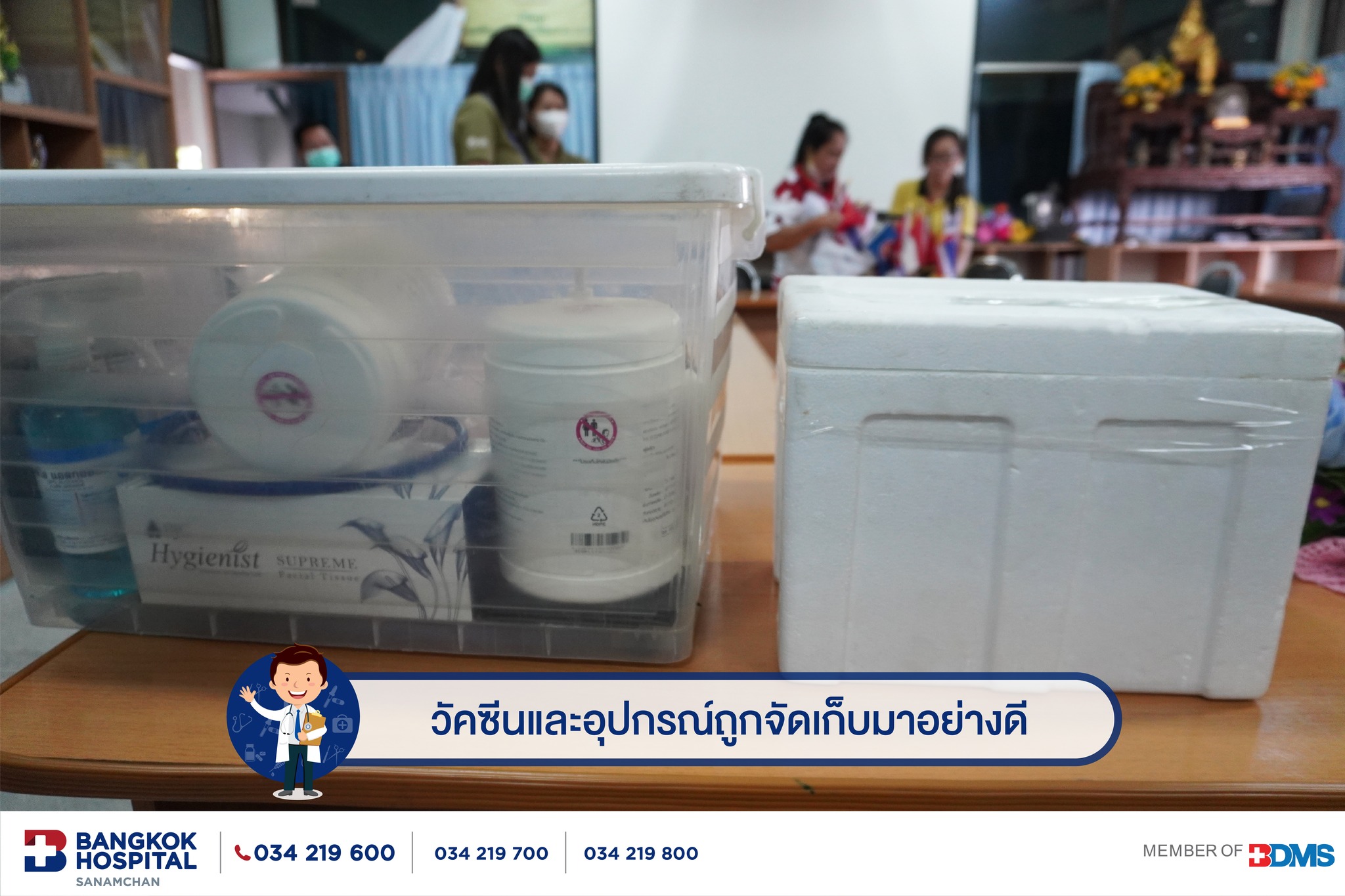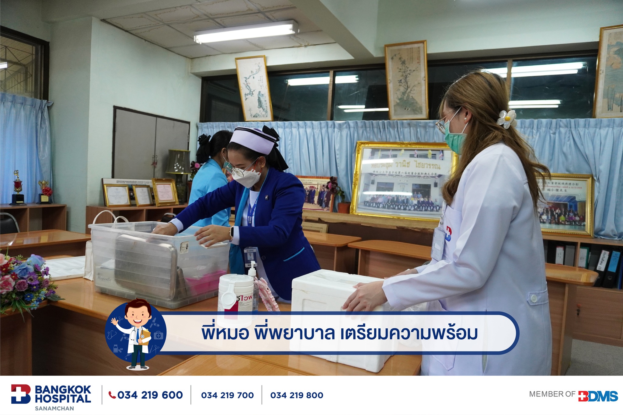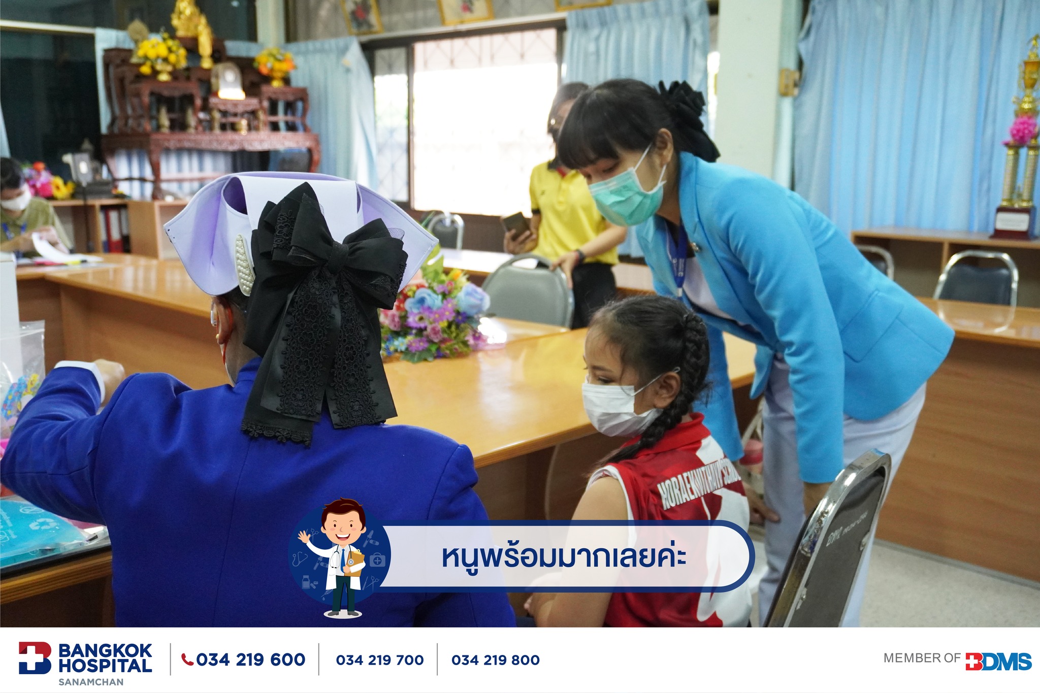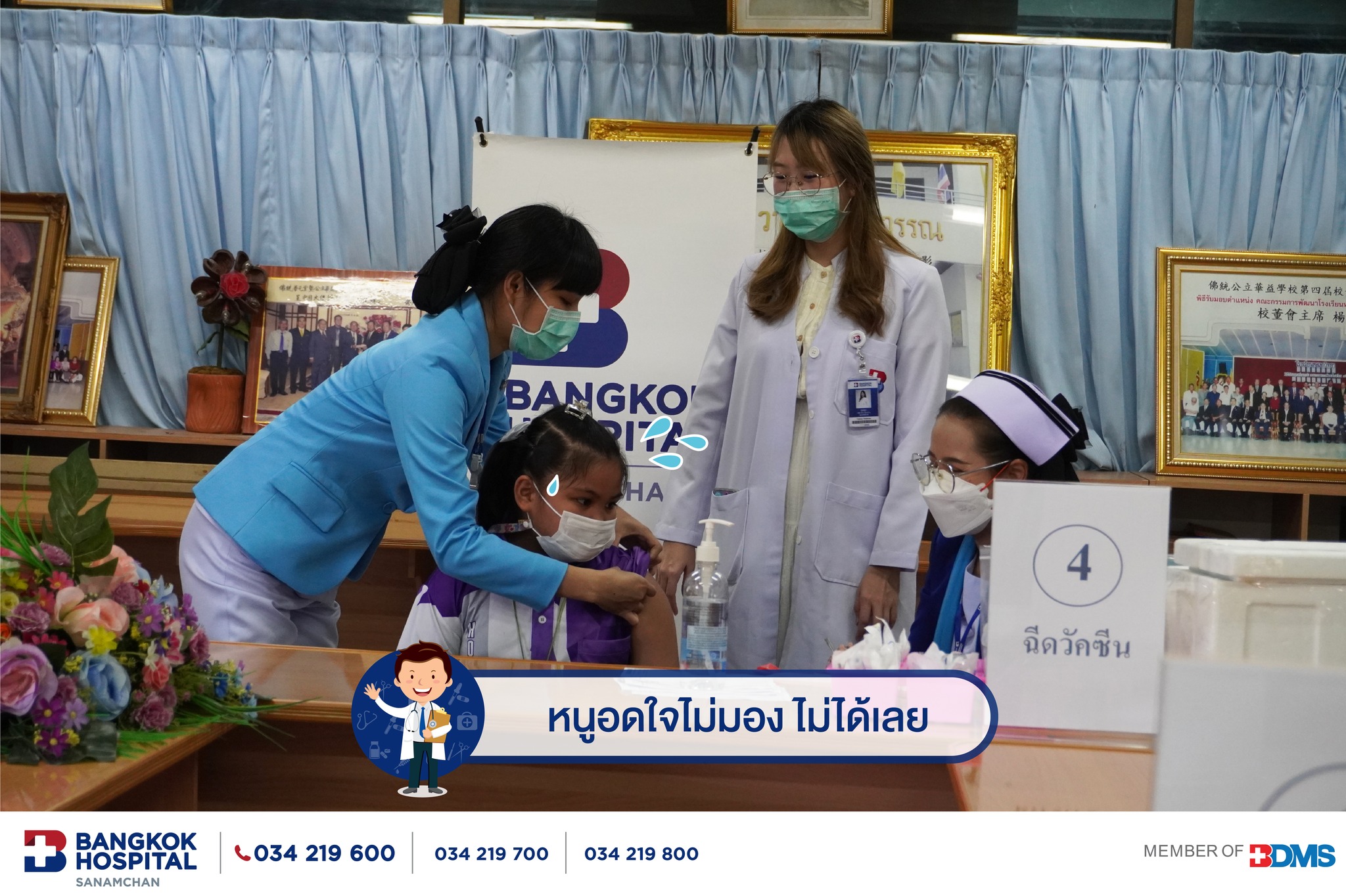การออกหน่วยฉีดวัคซีนพี่หมอ พี่พยาบาลโรงพยาบาลกรุงเทพสนามจันทร์ ที่ไปมอบภูมิคุ้มกันวัคซีนไข้หวัดใหญ่ให้น้องๆที่โรงเรียนหอเอกวิทยา