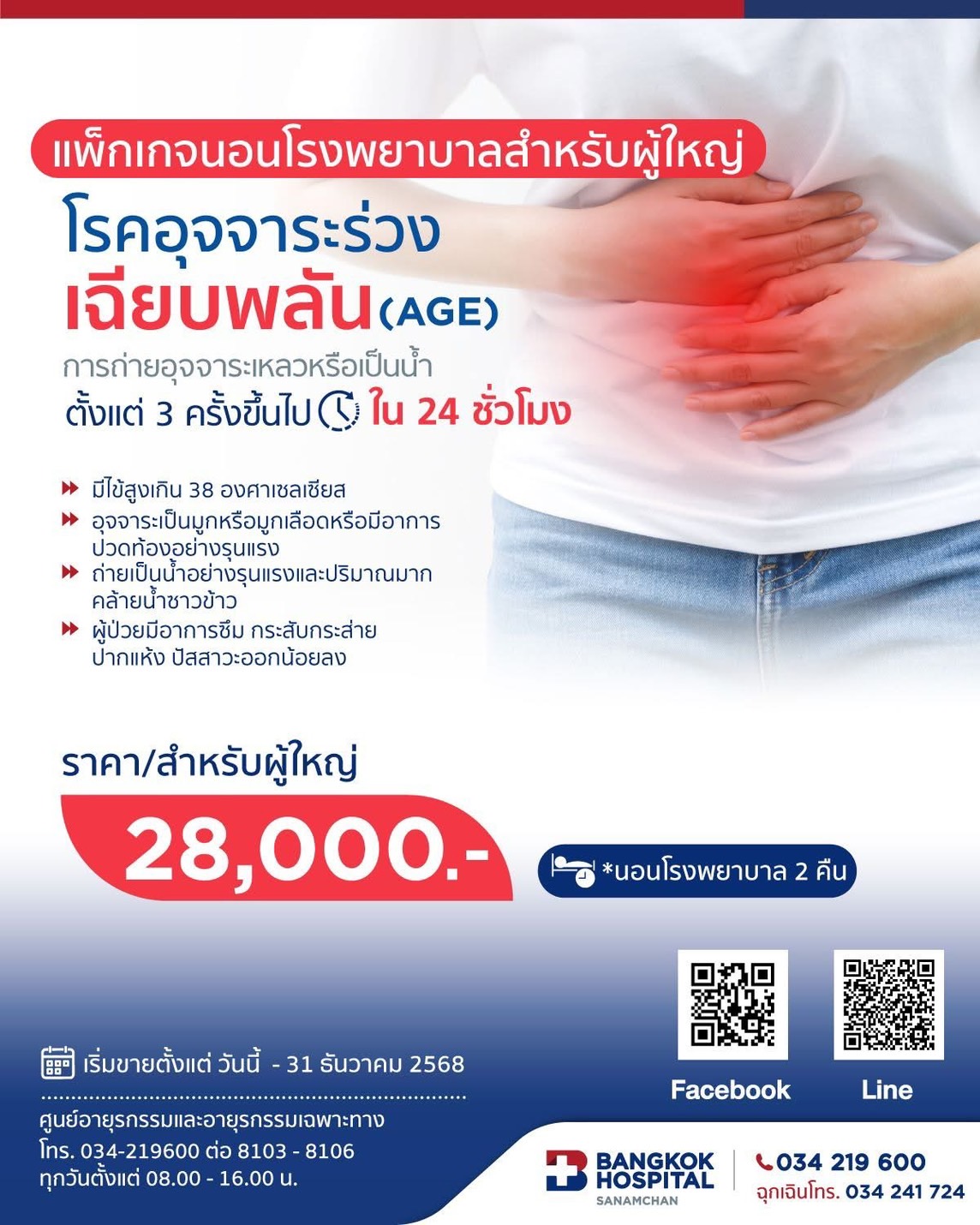 แพ็กเกจนอนโรงพยาบาลสำหรับผู้ใหญ่ โรคอุจจาระร่วงเฉียบพลัน(AGE) รพ. กรุงเทพ สนามจันทร์