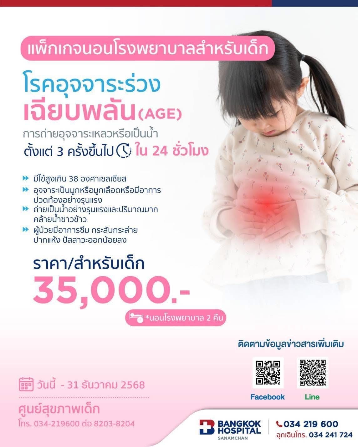 แพ็กเกจนอนโรงพยาบาลสำหรับเด็ก โรคอุจจาระร่วงเฉียบพลัน(AGE) รพ. กรุงเทพ สนามจันทร์