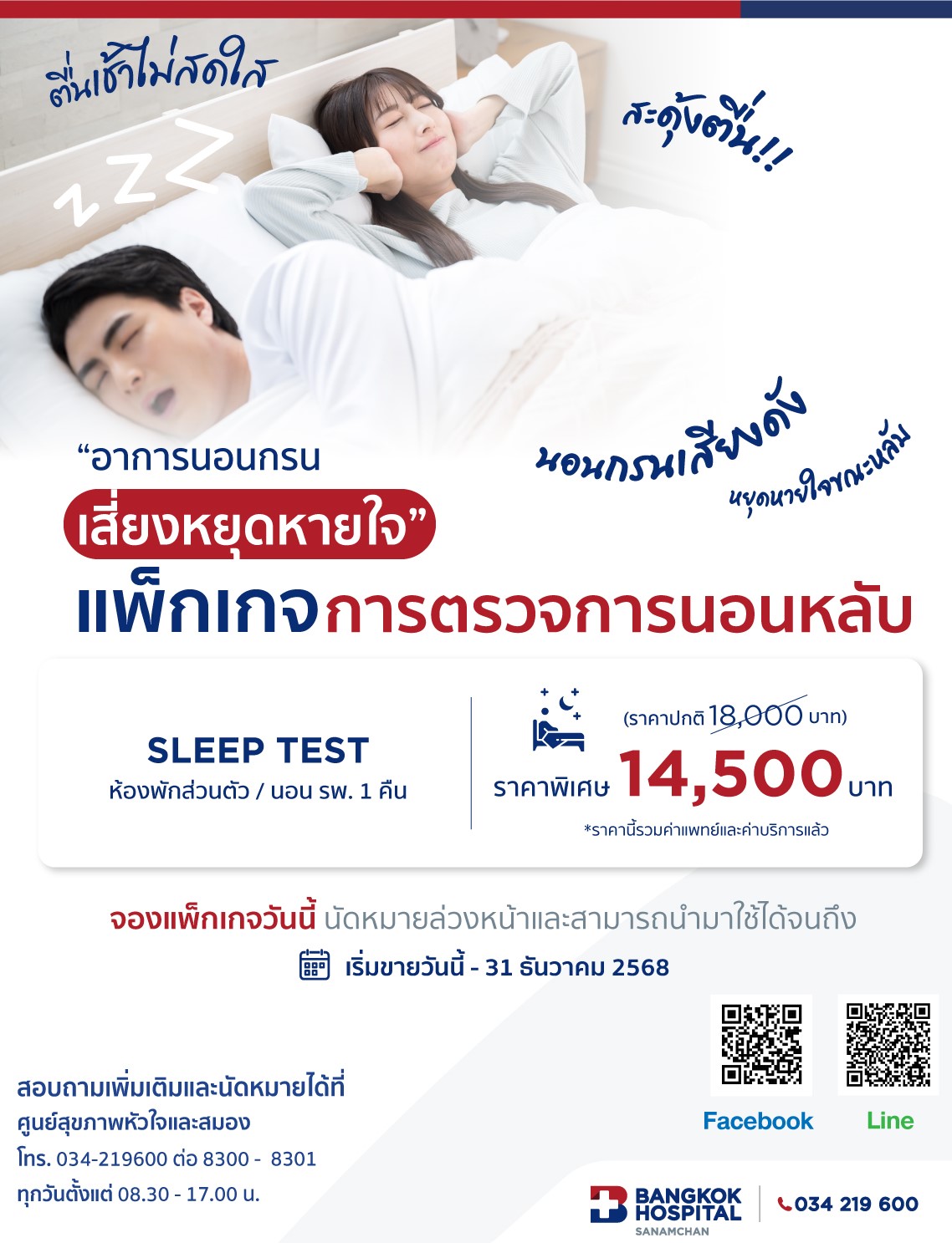 โปรโมชั่นสุดคุ้ม! แพ็กเกจ Sleep Test ตรวจสุขภาพการนอนหลับ
