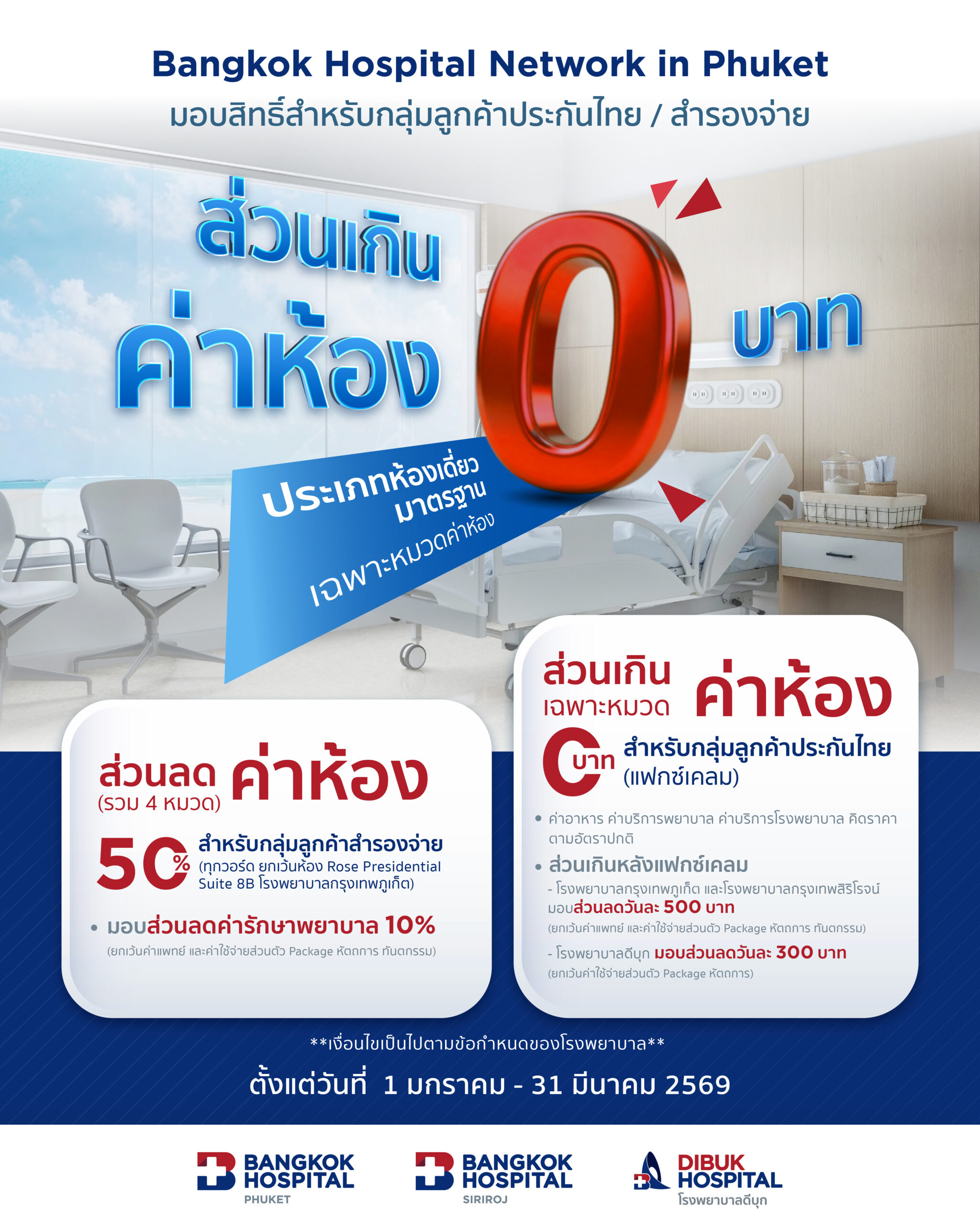 สิทธิพิเศษ ไม่มีส่วนเกินค่าห้อง สำหรับลูกค้าประกันไทย