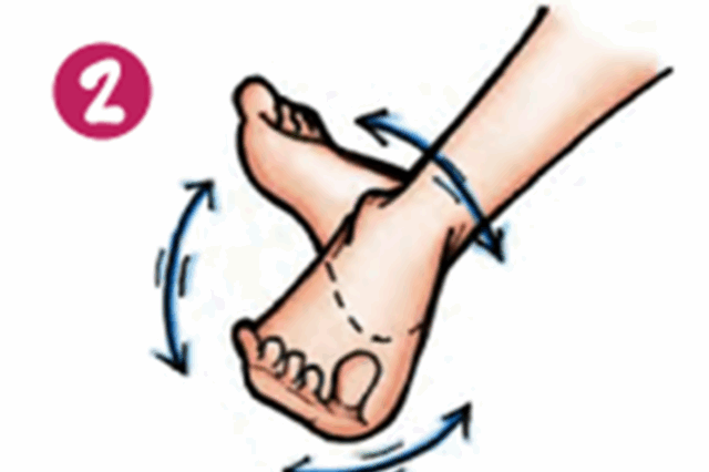 หมุนข้อเท้าเข้าและออกอย่างช้า ๆ 20 ครั้ง ต่อชุด (เช้า – กลางวัน – เย็น)