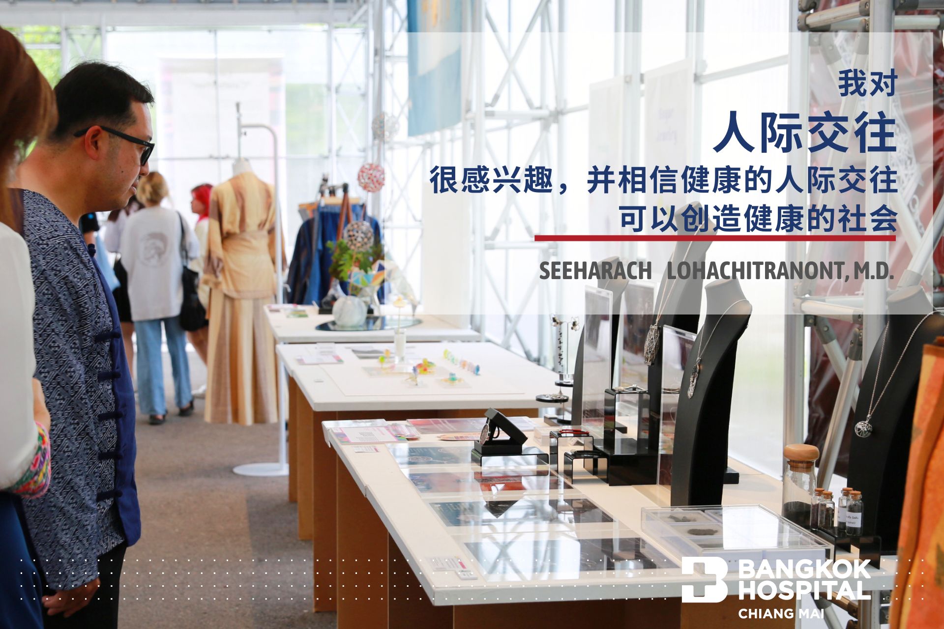 谈话的同时我们一起走过展览中心,一切进行得很顺利,只是在他走过每个展位时总会被我们问询的他感兴趣的问题所打断。他通过驻足观看纺织品、银器和传统烛台上的设计,以及参与清迈绿地的分配,试图在这些细节和设计中发现并了解兰纳人的生活方式。这也让我们禁不住从“医生”和“医院院长”的不同角度询问他对人民的看法。