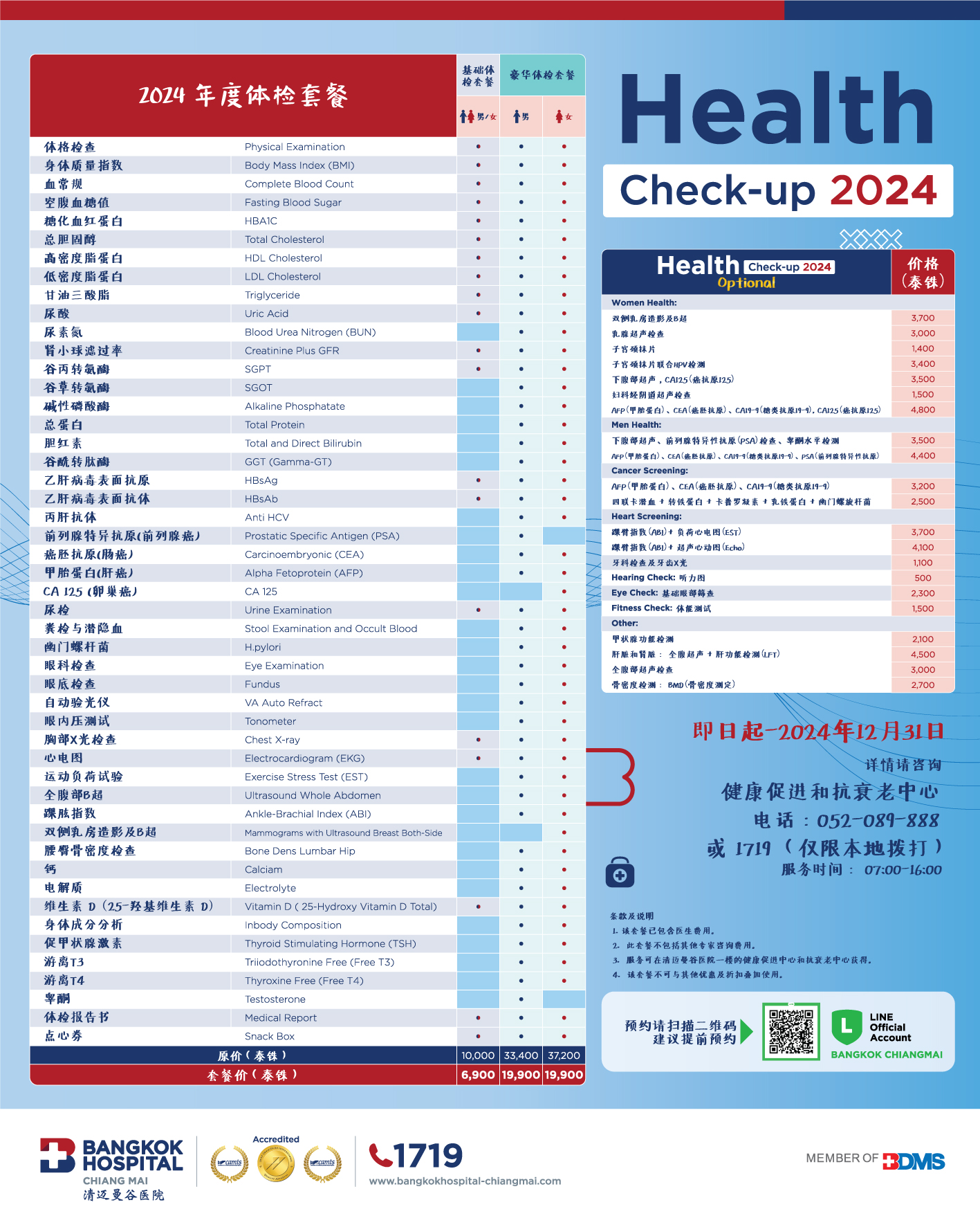 - Cancer Screening: AFP, CEA, CA19-9, PSA : 4,400 THB