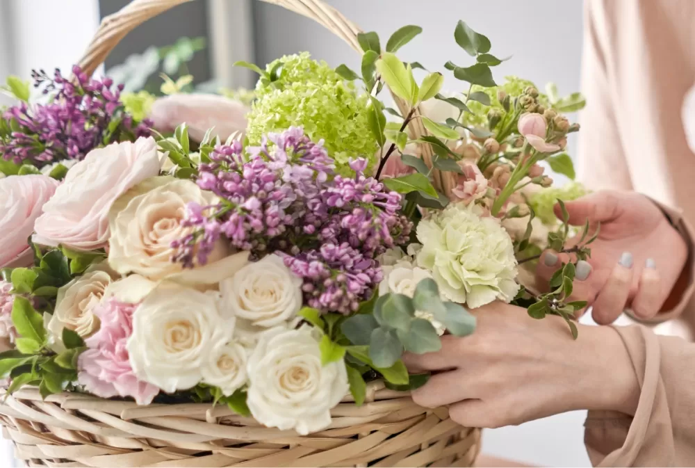 花篮鲜花订购服务,鲜花和干花都有多种选择,例如花篮、花束、花瓶,包括设计醒目的花盒
