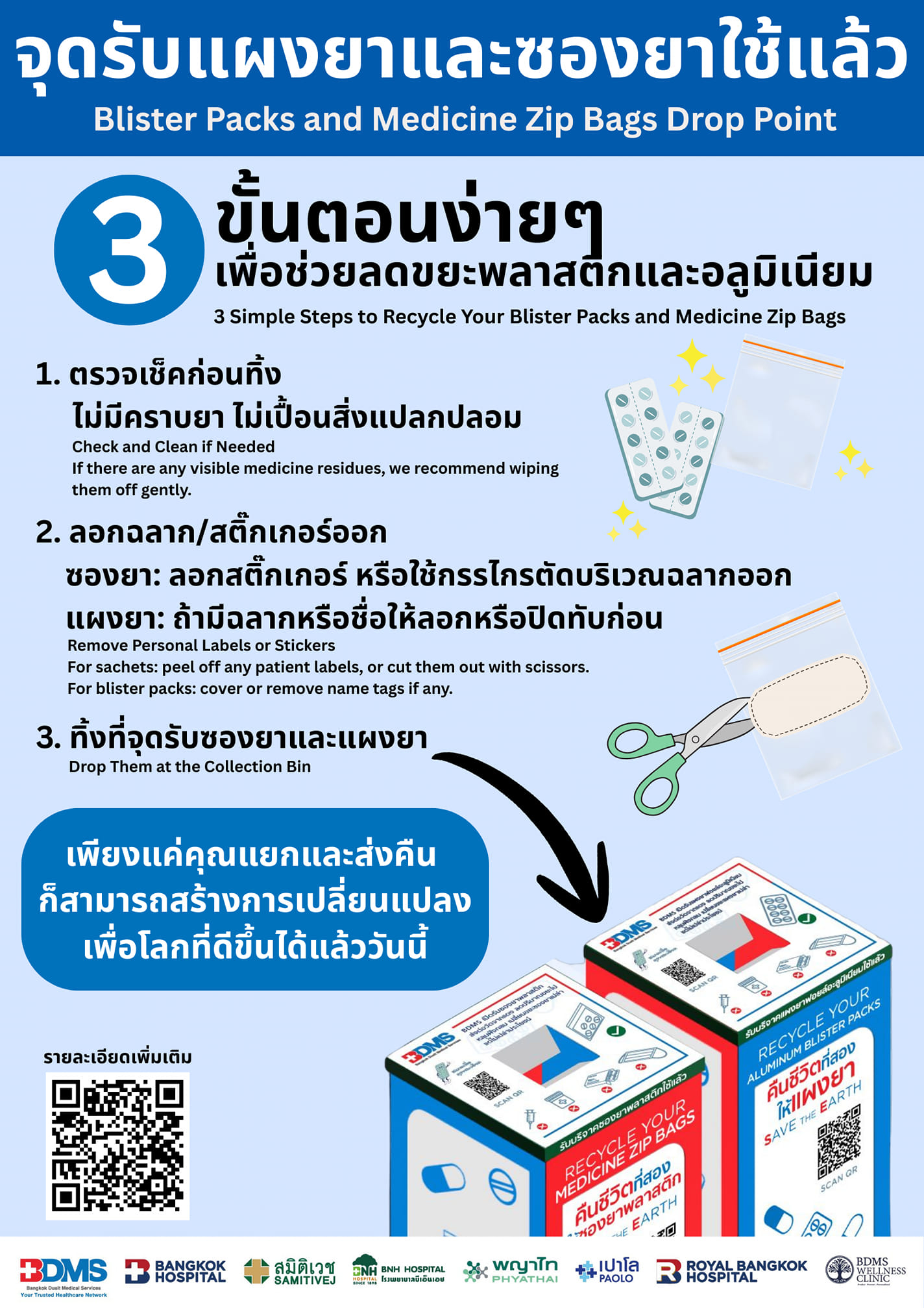 曼谷医院 Pluak Daeng 邀请您加入该项目,让塑料药丸泡罩包装和小包装获得第二次生命。< 1 分钟阅读时间信息提供方Bangkok Hospital Pluakdaeng更新于: 29 1月 2026推荐套餐2026 智能预防健康体检计划持续照护计划 / 连续健康管理方案乙型肝炎免疫力检测及疫苗接种Bangkok Hospital Pluakdaeng更新于: 29 1月 2026让我们携手合作,让药片包装和泡罩包装获得第二次生命。 曼谷医院 Pluak Daeng 邀请您加入该项目,让塑料药丸泡罩包装和小包装获得第二次生命。 促进对用过的药包和泡罩包装材料的适当回收,以减少浪费。 为环境和社会创造新的效益 可捐赠的物品:铝泡罩包装和药品拉链袋。 捐赠地点:药剂部、门诊部捐款箱 收到的材料将以环保的方式回收,以帮助减少浪费并最大限度地减少长期环境影响。 通过简单地将它们分开并归还,您就可以为当今更美好的世界做出贡献。 我们感谢您与曼谷 Pluak Daeng 医院一起为保护世界所做的一切努力。 套餐和推广2026 智能预防健康体检计划1,900 - 11,000 铢详细信息Buy Now持续照护计划 / 连续健康管理方案750 - 22,900 铢详细信息Buy Now乙型肝炎免疫力检测及疫苗接种890 - 1,800 铢详细信息Buy Now更多套餐新闻与活动查看全部新闻与活动曼谷普洛登医院举办 Open House 活动,欢迎玛普扬蓬威塔亚康学校师生来访参观学习。“学术开放日·儿童步行街市集” 为学生、教师及家长打造身心健康学习体验曼谷普罗登医院接受了床位扩增至 120 张及牙科服务启用的检查评估,评估工作由卫生服务支持司与罗勇府公共卫生办公室共同进行。查看全部