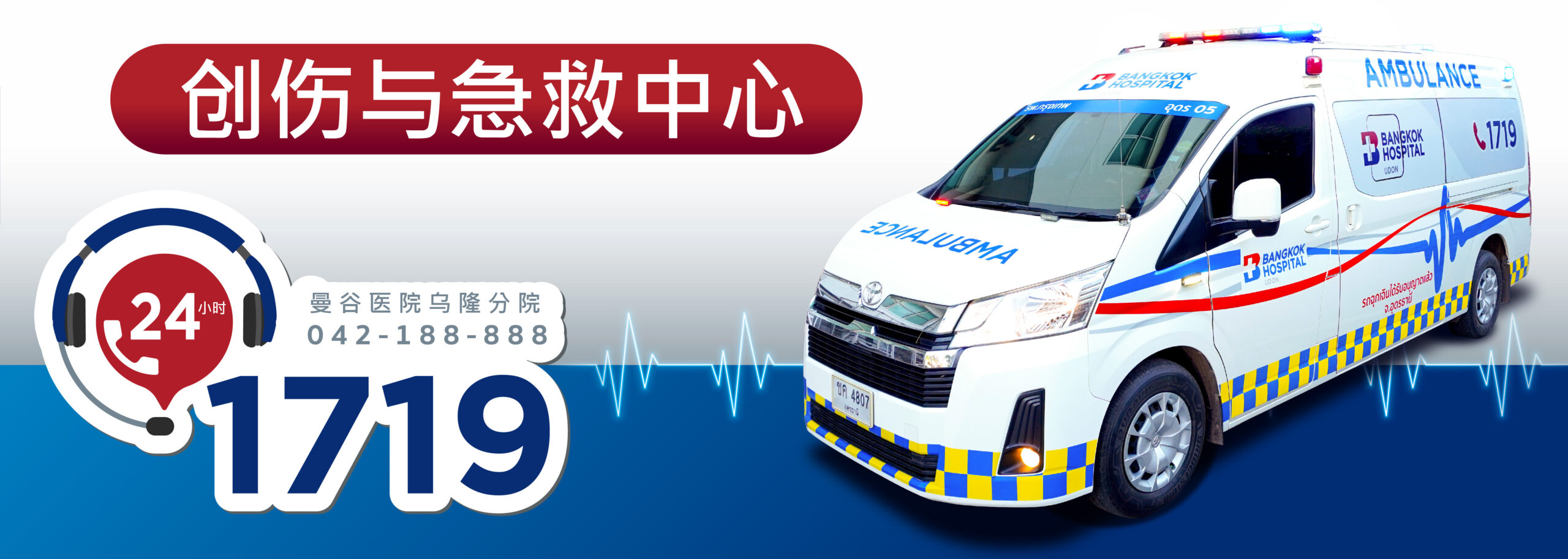 医疗紧急情况,立即手术创伤护理和全面康复,联系电话 042343444 或 1719
